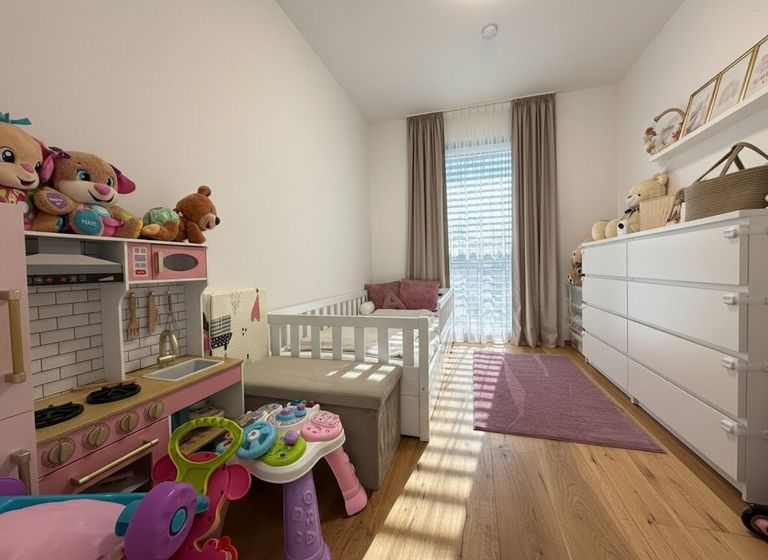 Die Wohnung verfügt über zwei weitere Zimmer, die flexibel als Schlafzimmer, Kinderzimmer oder Homeoffice genutzt werden können. Ein praktischer Abstellraum sorgt für zusätzlichen Stauraum und erhöht den Wohnkomfort im Alltag.