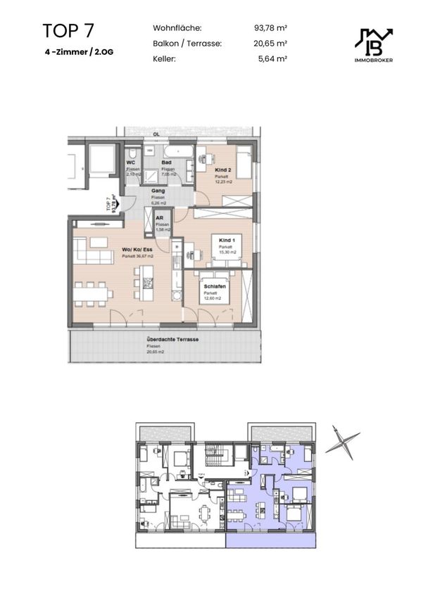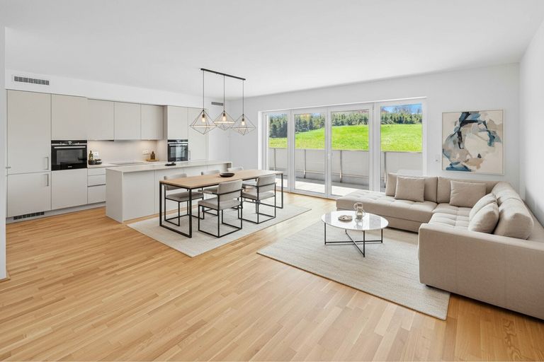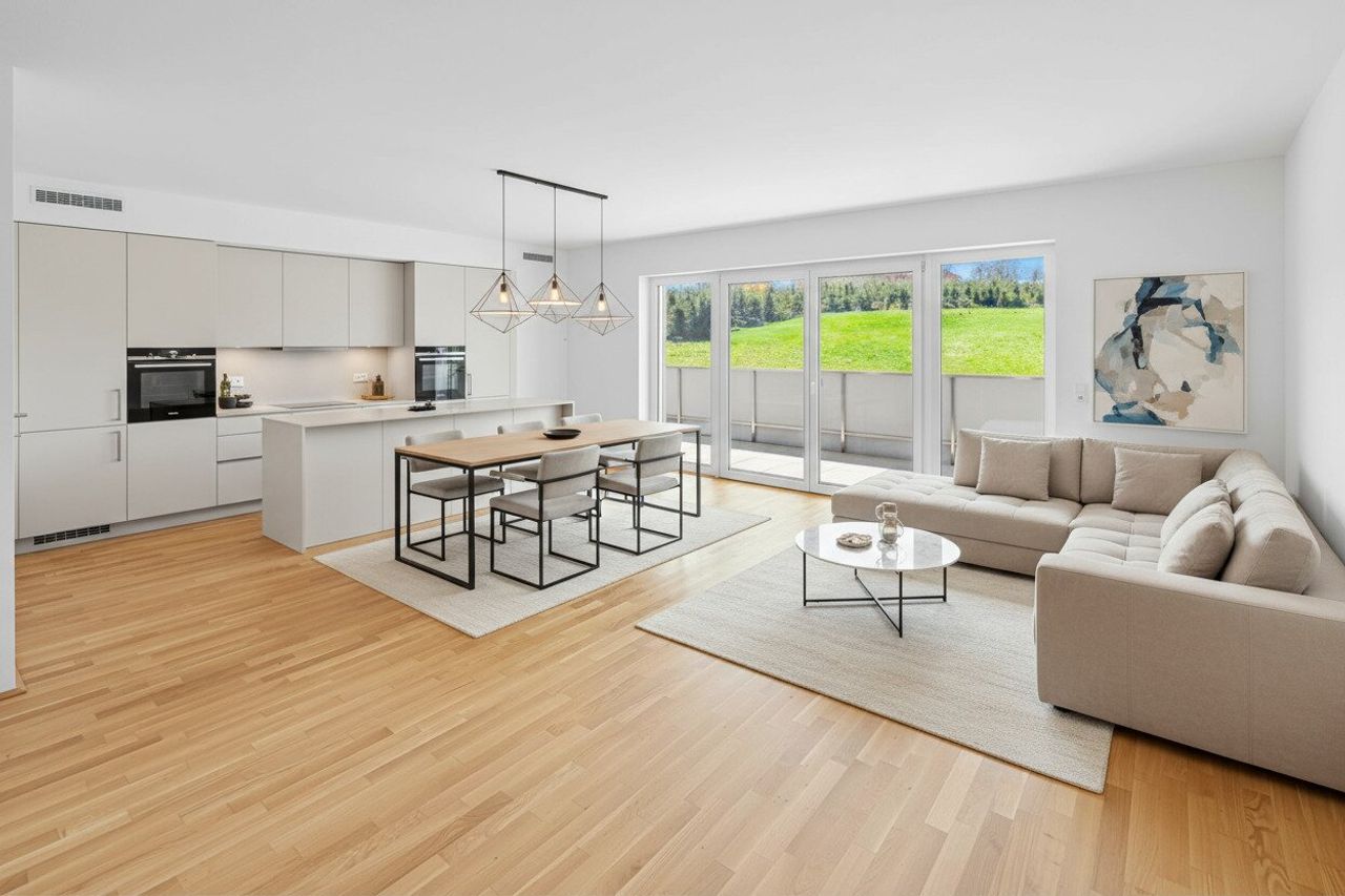 Die größte Wohnung der Anlage überzeugt mit Weitblick, Großzügigkeit und hochwertiger Ausstattung. Der lichtdurchflutete Wohn-Essbereich mit rund 36 m² bietet viel Platz für Wohnen, Kochen und Leben – mit direktem Zugang zur überdachten Südterrasse. Drei Schlafzimmer – eines davon über 15 m² – machen die Wohnung zum idealen Familiendomizil.