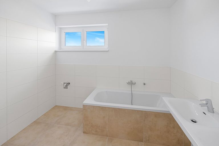 Ein elegantes Bad mit Badewanne, separates WC, ein praktischer Abstellraum sowie ein zentraler Vorraum bieten höchste Alltagstauglichkeit. Das Raumgefühl ist offen und modern, die Ausstattung überzeugt durch Qualität und Nachhaltigkeit.