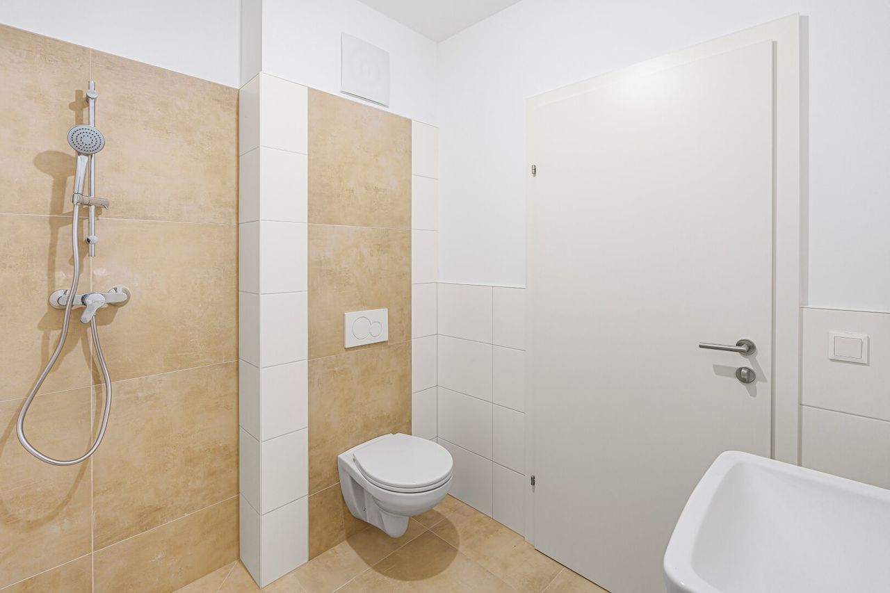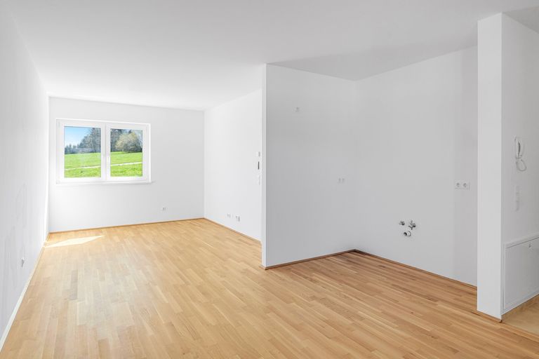 Diese Wohnung im 1. Obergeschoss überzeugt durch ihre klare Struktur und praktische Wohnfläche. Der offene Wohnbereich mit integrierter Küche bietet Zugang zur südlich gelegenen Terrasse – perfekt für Sonnenstunden oder ein gemütliches Frühstück im Freien.