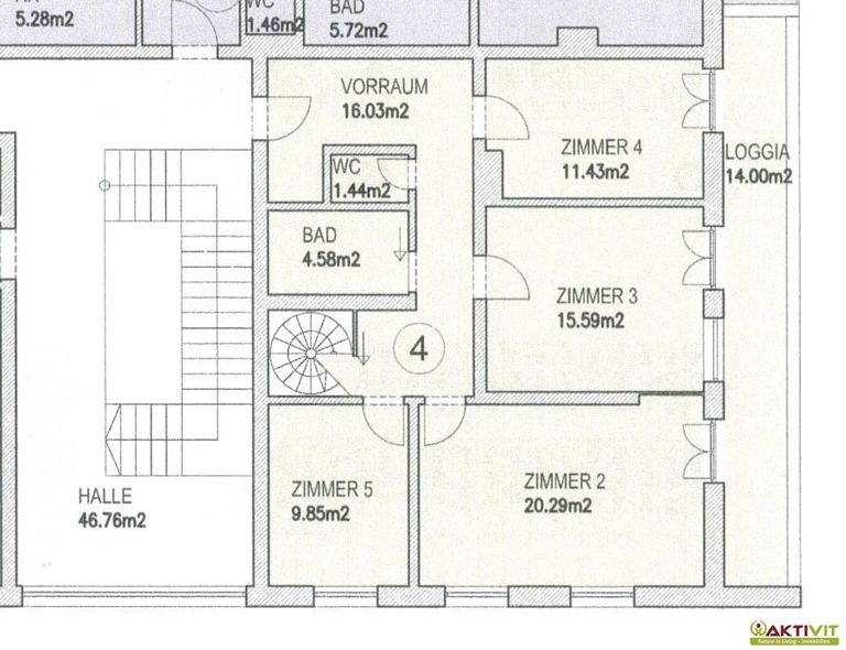Das Obergeschoss mit ca. 80 m² ist über die interne Wendeltreppe oder separat über das Stiegenhaus zugänglich. Es kann somit eigenständig genutzt oder abgeschlossen werden. Hier befinden sich ein Vorraum, vier Schlafzimmer, ein weiteres Badezimmer sowie ein zweites, separates WC. Highlight dieser Etage ist die Loggia mit rund 14 m², die zusätzlichen Wohnkomfort im Freien bietet.