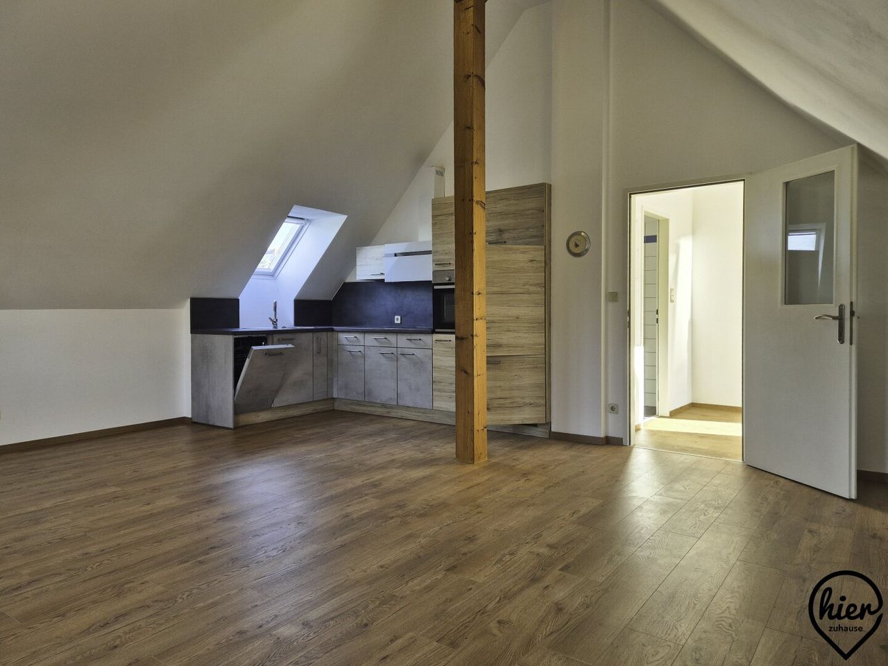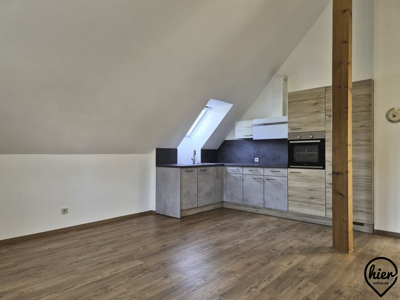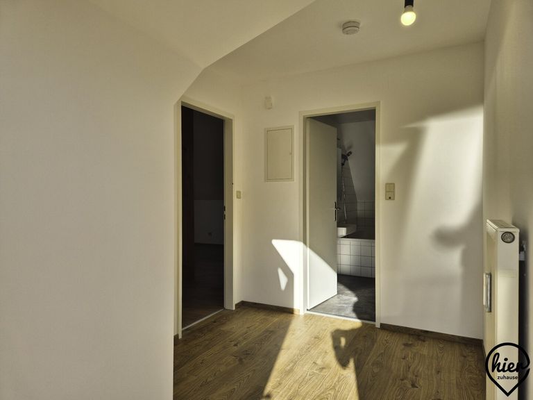 Die Wohnung besteht aus Vorraum, WC, 1 großes Zimmer, Küche, Abstellraum und Bad (mit Wanne). Zur Wohnung gehört ein Kellerabteil.