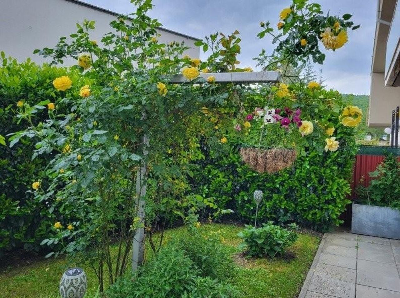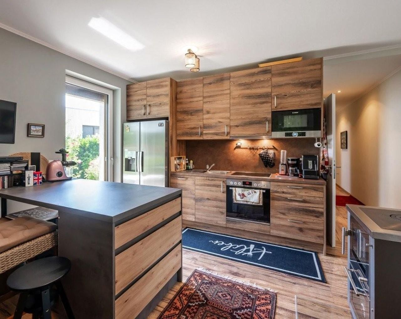 Das absolute Highlight der Wohnung stellt ohne Zweifel der traumhafte Garten und der helle und offene Wohnküchenbereich dar - mit solider Essgarnitur und gemütlichem Zusatzofen, mit dem man auch kochen und backen kann - und der zum Relaxen bei gemütlichem Kaminfeuer einlädt. Hier befindet man sich bereits in der erst kürzlich eingerichteten und modernen Einbauküche mit Spüle, Backofen, Ceranfeld, Dunstabzug, Kühlschrank und Geschirrspüler. Die verflieste Terrasse mit zauberhaftem Garten und Traumausblick lädt im Sommer zu Grillabenden mit Familie und Freunden ein!