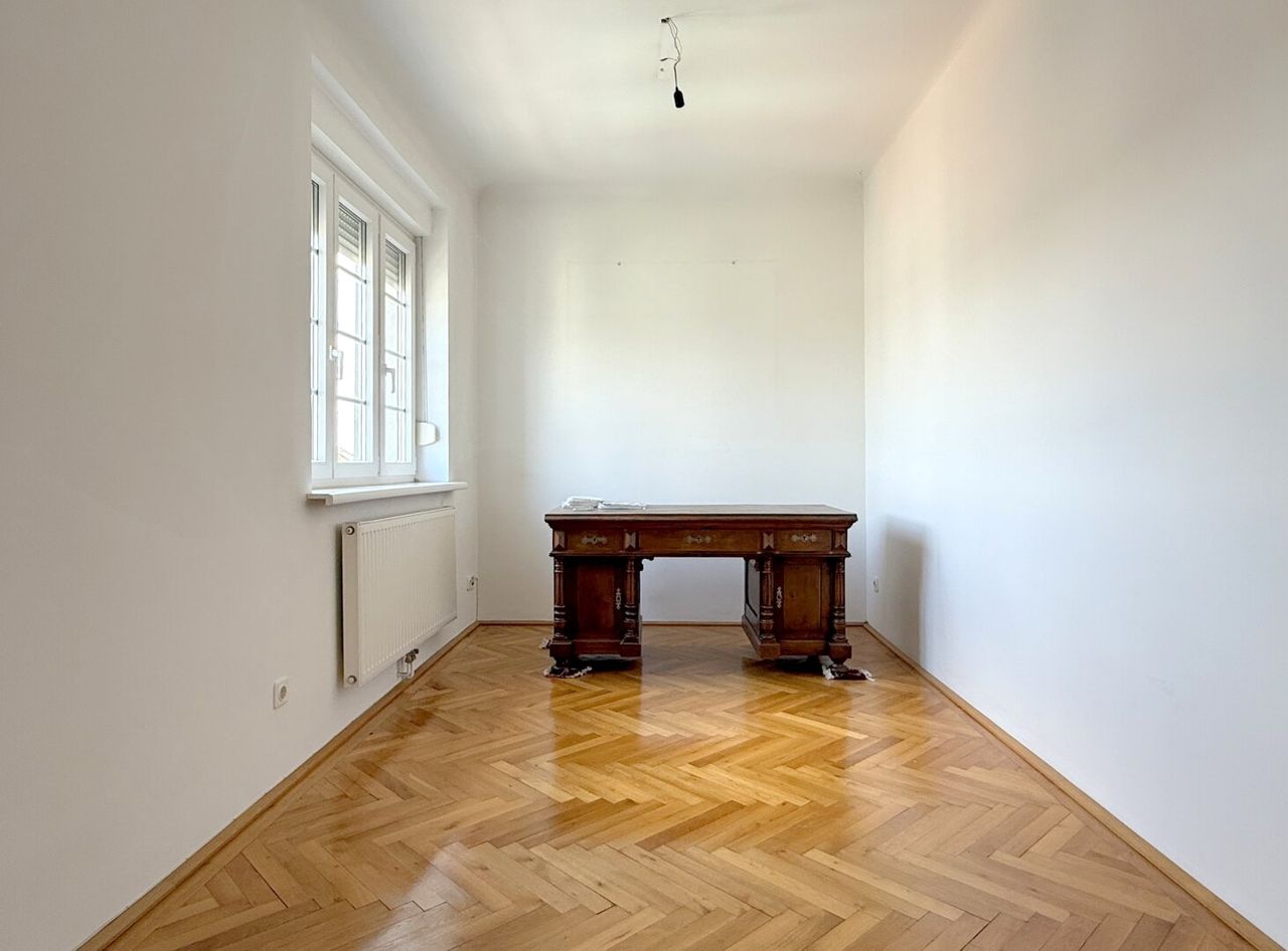 Gleich nach dem Eingang das Wohnzimmer – großzügig, lichtdurchflutet und mit einem Ausblick, der fast schon unverschämt ehrlich ist. Stift, Kahlenberg, Himmel, Weite – man könnte auch einfach die Tapete weglassen und das Fenster als Kunstwerk bezeichnen.
