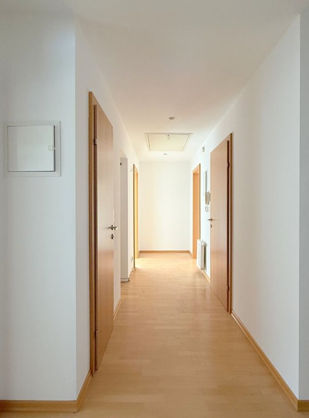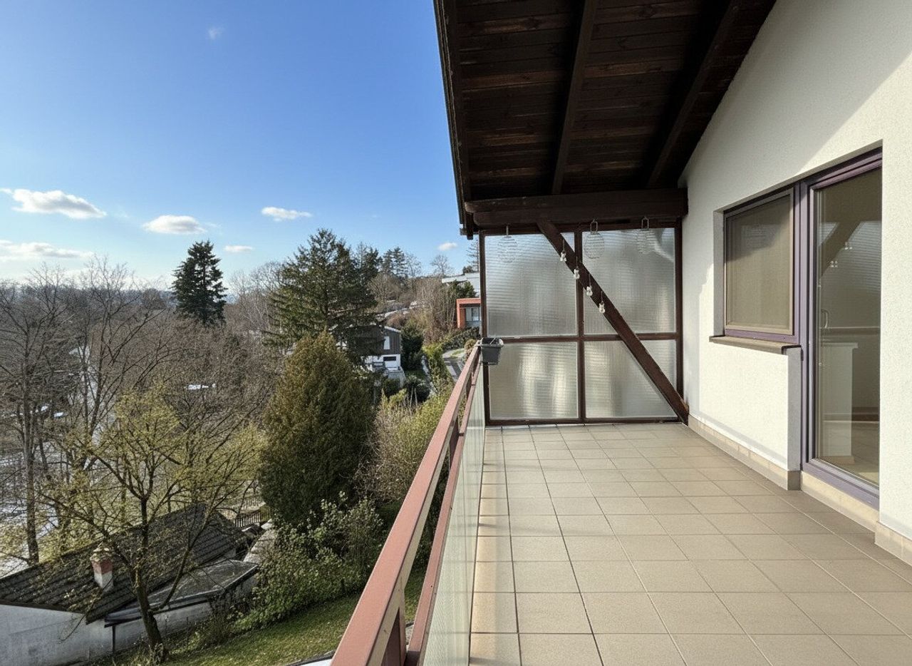 Rund 114 m² Wohnfläche, ergänzt durch eine Loggia, liegen hier über den Dächern von Hadersfeld – darüber nichts als Dach und Himmel. Das Gefühl ist sofort ein anderes. Weite. Licht. Ruhe.