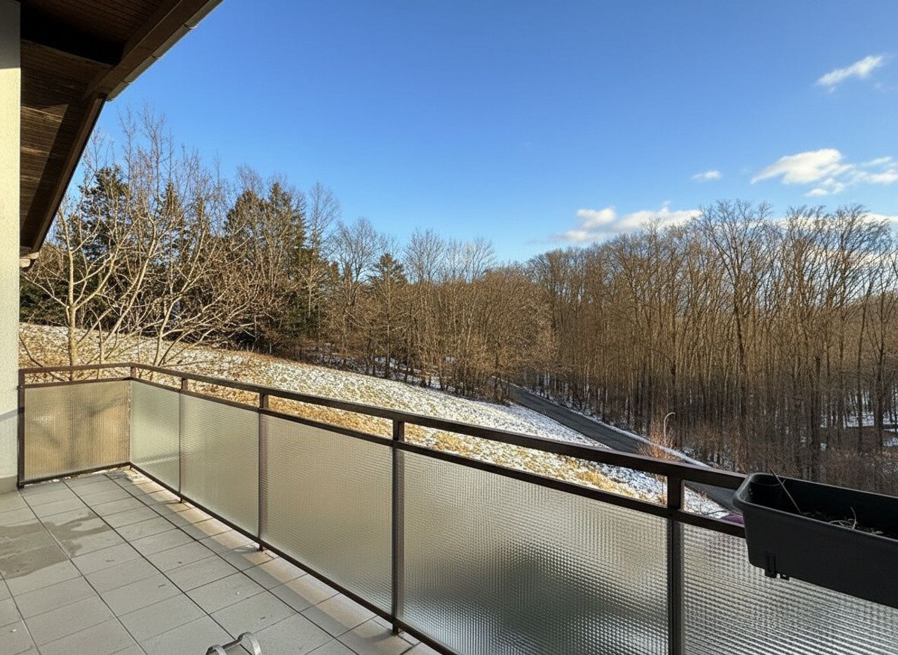 Hadersfeld, nur einen Katzensprung von Klosterneuburg entfernt, liegt erhöht, ruhig, fast verborgen. Wald ringsum, wenig Verkehr, viel Himmel. Und genau dort, am Hang, thront diese Dachgeschosswohnung wie eine Loge über dem Tal.