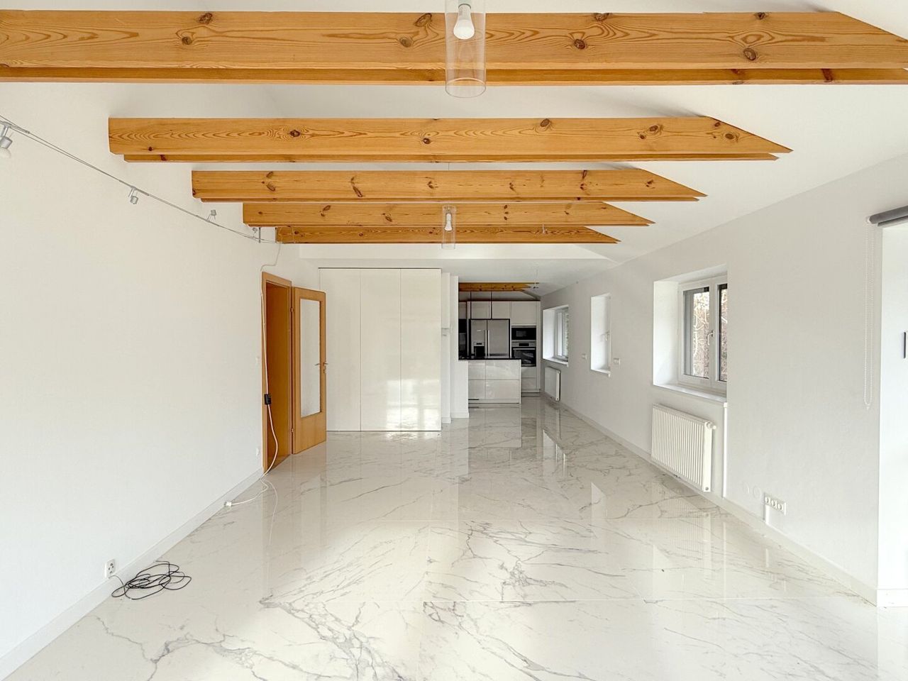 Ein eigener Stellplatz gehört selbstverständlich dazu. Statt eines klassischen Kellerabteils steht ein rund 91 m² großer Dachboden zur Verfügung – eine außergewöhnliche Fläche mit viel Potenzial.