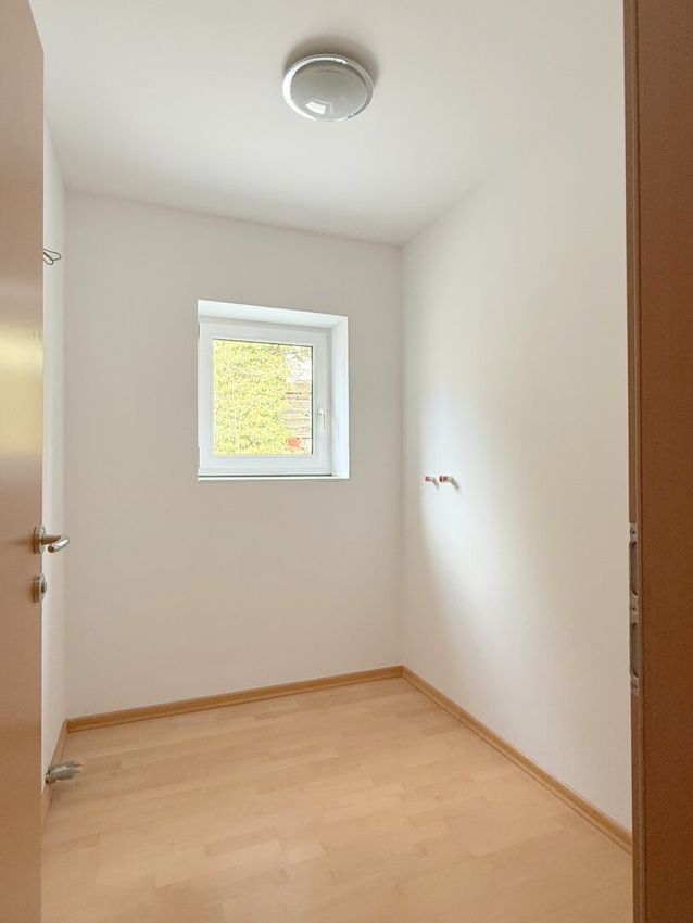 Neben Dusche und WC bildet die freistehende Badewanne den Mittelpunkt des Raumes. Ein Platz zum Abschalten – ruhig, großzügig und mit einer gewissen Eleganz, die im Alltag schnell zum kleinen Luxusmoment wird. Zusätzlich steht ein weiteres, separates WC zur Verfügung. Der Wirtschaftsraum sorgt für Ordnung im Hintergrund.