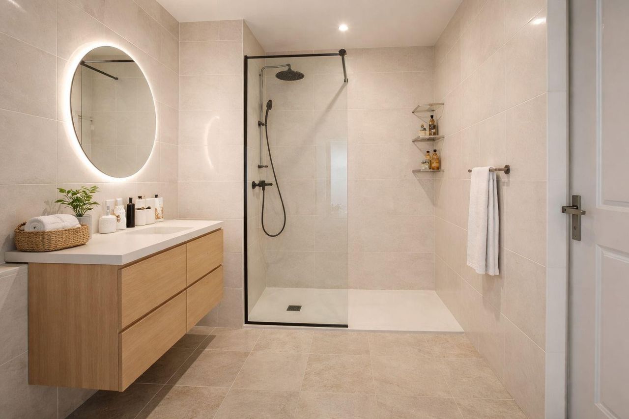 • ein Badezimmer mit Dusche und zusätzlichem WC