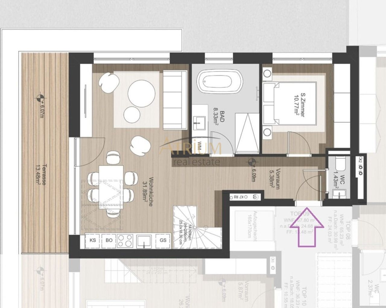 Maisonette mit ca. 80 m² Wohn-/Galeriefläche, großzügiger 12 m² Terrasse, barrierefreiem Zugang, offener Galerie & hochwertiger Ausstattung.