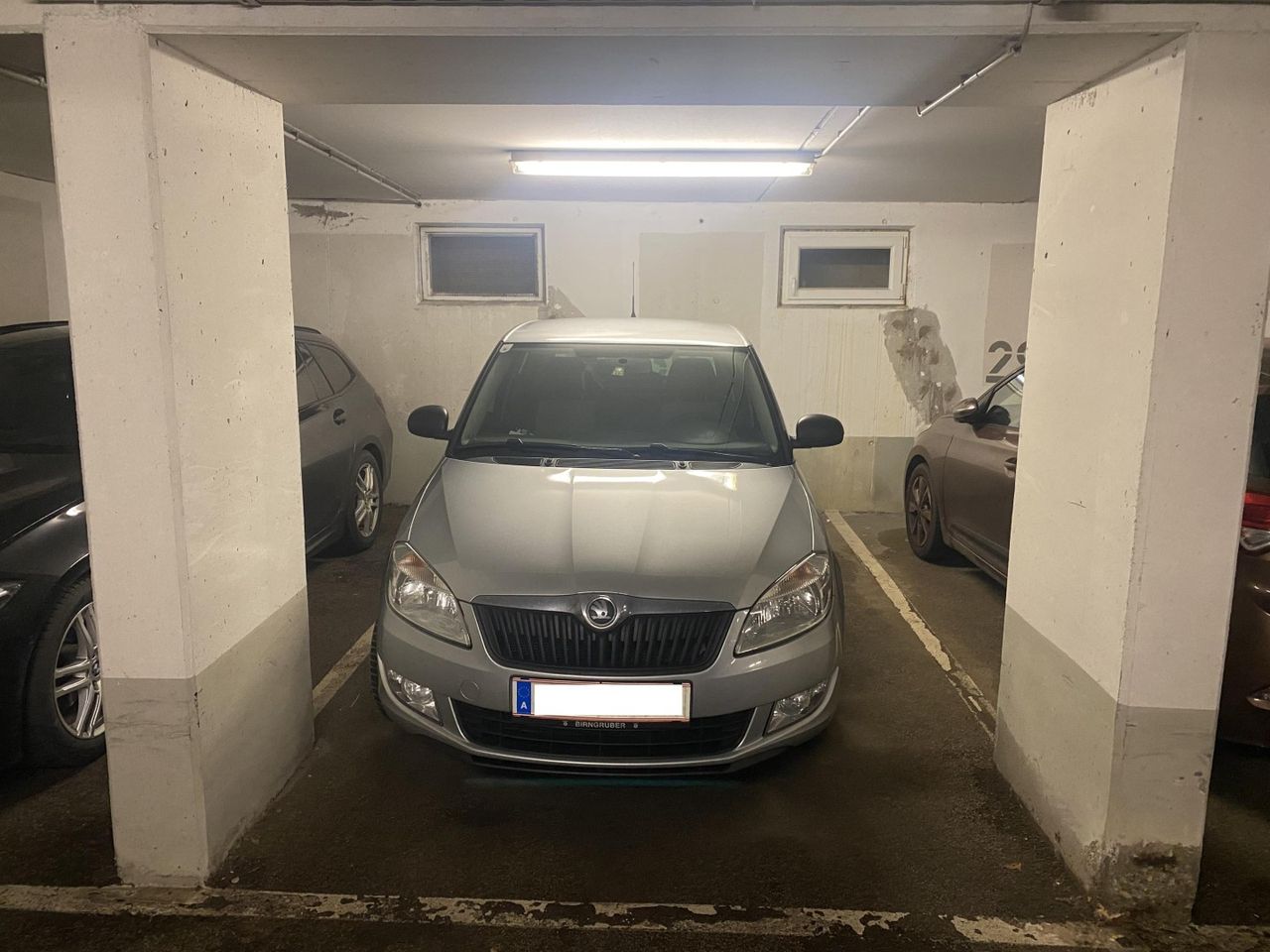 Ein PKW-Garagenplatz und ein kleines Kellerabteil sind im Angebot inkludiert.