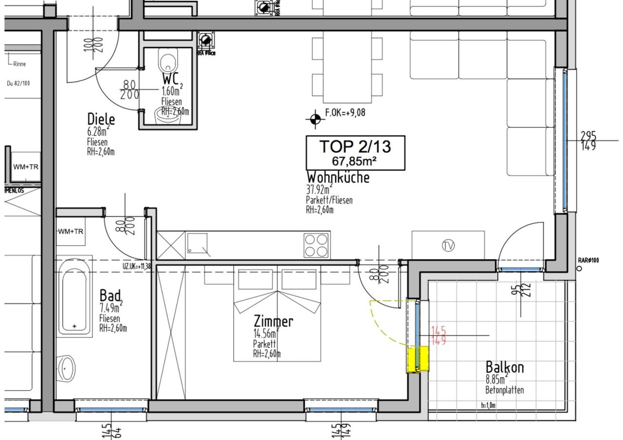 Die Wohnung befindet sich im 3. Liftstock und präsentiert sich lichtdurchflutet, optimal geschnitten und in sehr gepflegtem Zustand. Bereits beim Betreten vermittelt das großzügige Vorzimmer ein angenehmes Wohngefühl. Von hier aus gelangt man in die helle Wohnküche, die mit einer tollen DAN-Küche ausgestattet ist und viel Platz zum Kochen und Wohlfühlen bietet ebenfalls hat man aus der Wohnküche direkten Zugang zum sonnigen Balkon, der zusätzlichen Freiraum zum Entspannen bietet.
