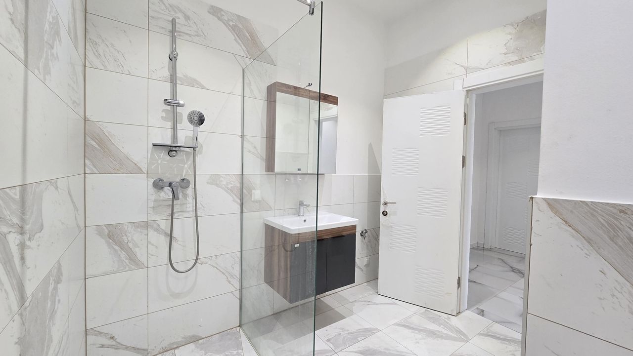 Der neu verlegte Parkettboden verleiht den Wohnräumen eine warme, einladende Atmosphäre, während großformatige Bodenfliesen in Bad und Vorraum den zeitgemäßen Charakter unterstreichen. Eine energieeffiziente Fußbodenheizung sorgt das ganze Jahr über für behagliche Wärme.