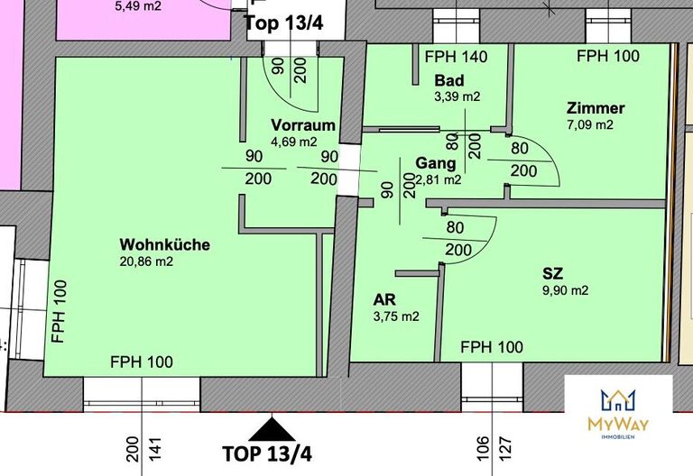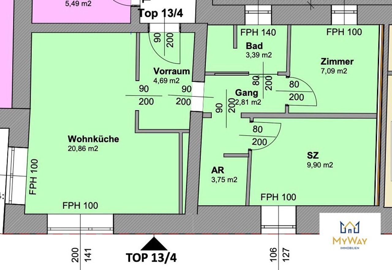 WohnKüche - Schlafzimmer - Kinderzimmer - Badezimmer mit Dusche und WC - Abstellraum - Vorraum