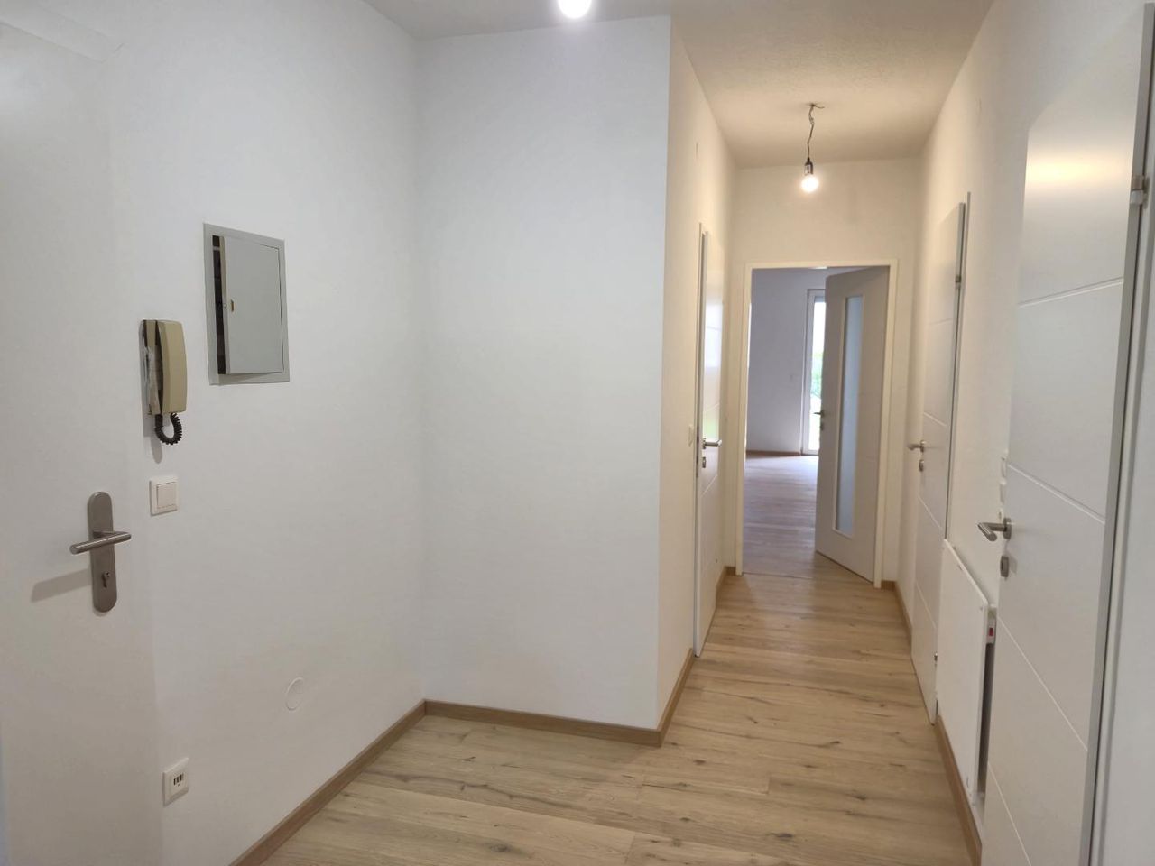 Vorraum, Badezimmer, separates WC, Abstellraum, offene Küche und Wohnzimmer, Schlafzimmer, 16m² Terrasse mit eigenem Garten.