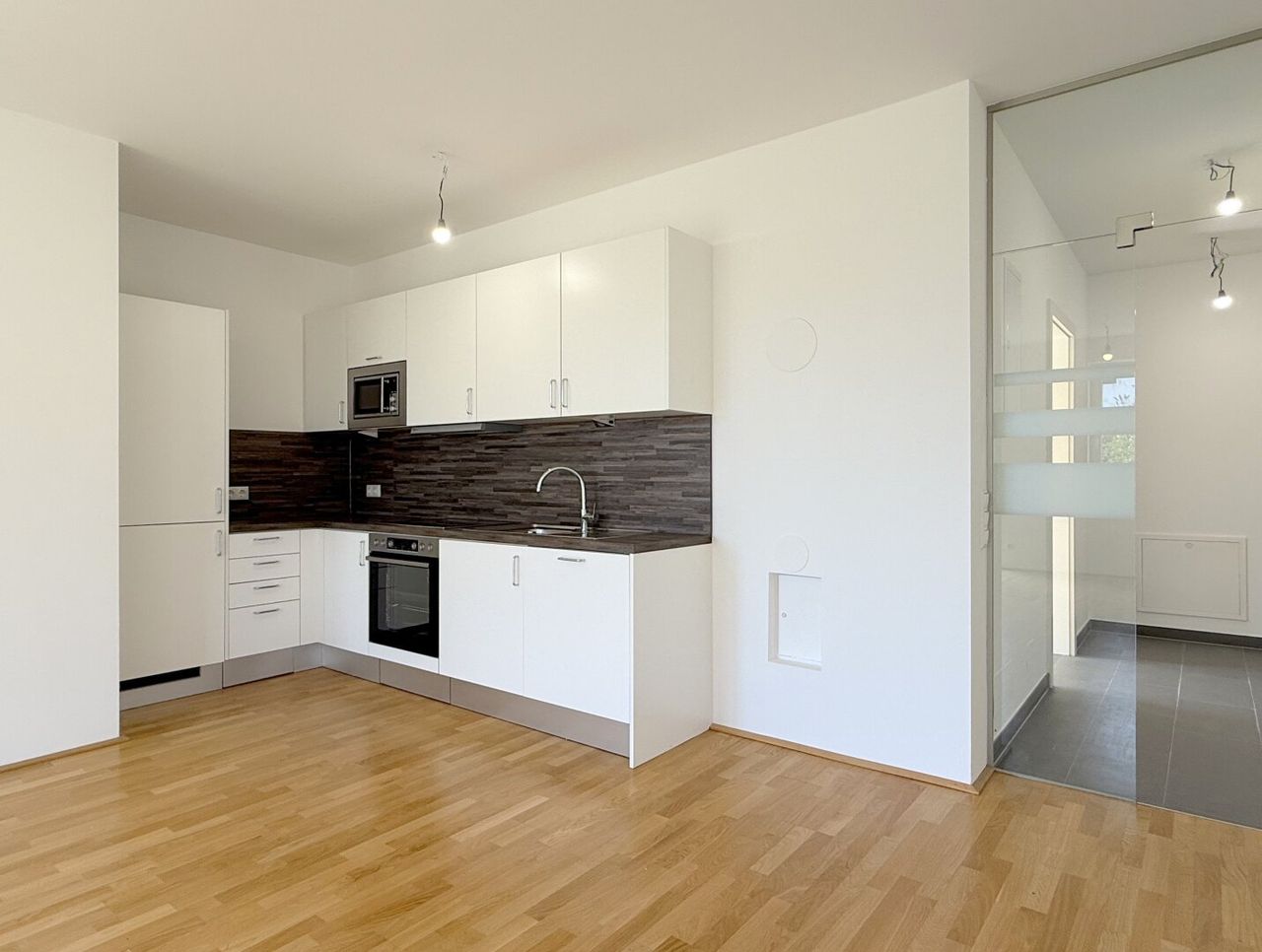 Der große Wohnraum von fast 30 m² ist lichtdurchflutet und offen gestaltet. Die offene Küche fügt sich elegant ein, lässt viel Raum für Wohn- und Essbereich und ist ideal für gemeinsame Stunden mit Familie oder Freunden.