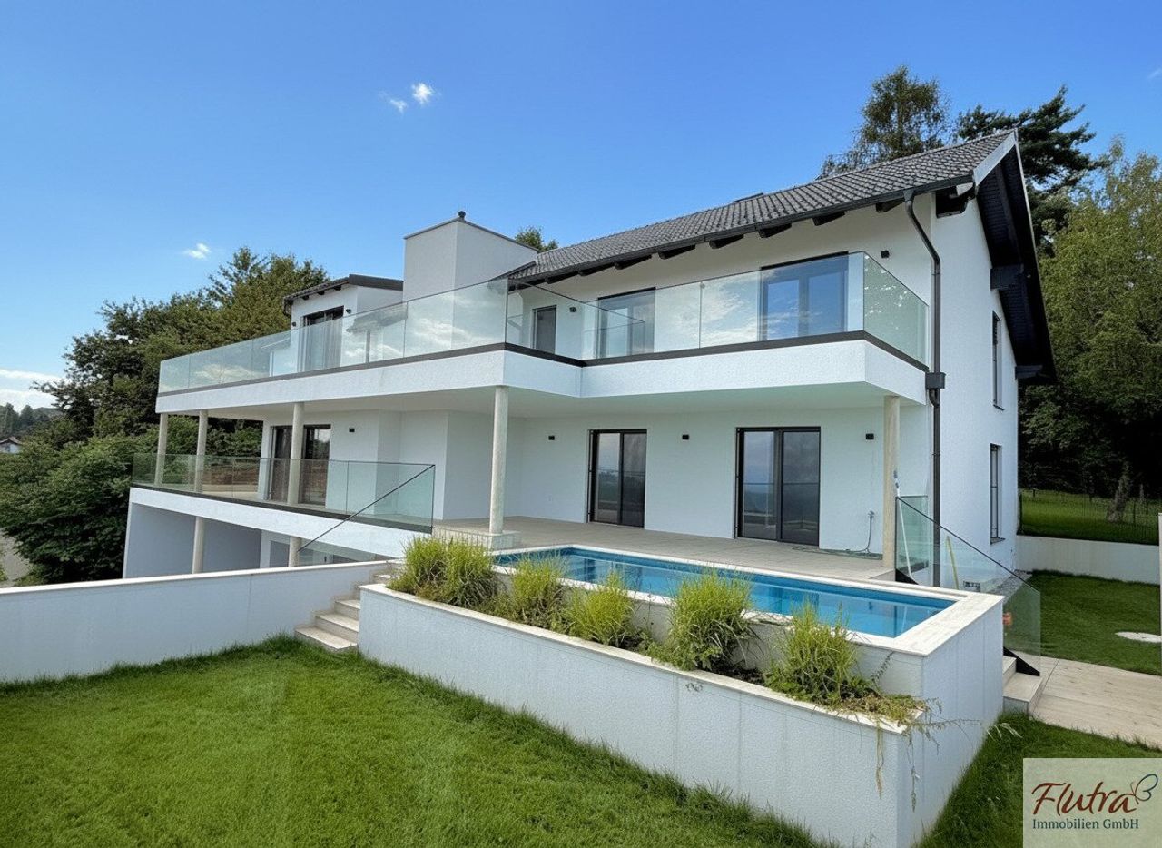 Besonders hervorzuheben ist der traumhafte Garten, der nicht nur ein privates Refugium für entspannte Stunden im Freien darstellt, sondern auch ausreichend Platz für gesellige Grillabende oder entspannte Stunden im Grünen bietet. Genießen Sie die Sonne auf Ihrer eigenen Terrasse, während Sie den atemberaubenden Fernblick über die malerische Umgebung in vollen Zügen auskosten. Dieser Außenbereich inkl. hochwertigen Pool wird schnell zu Ihrem persönlichen Lieblingsplatz.