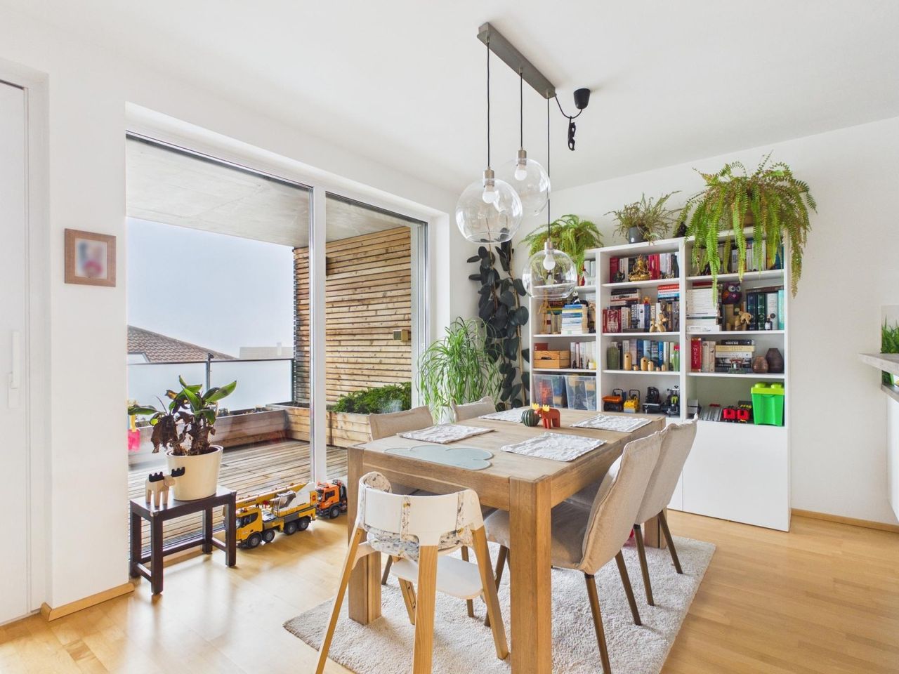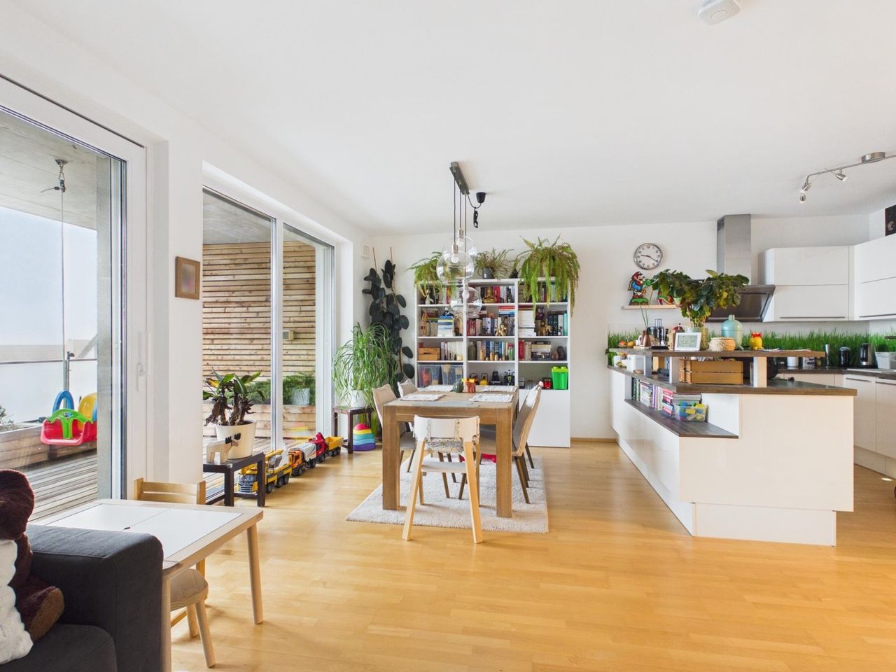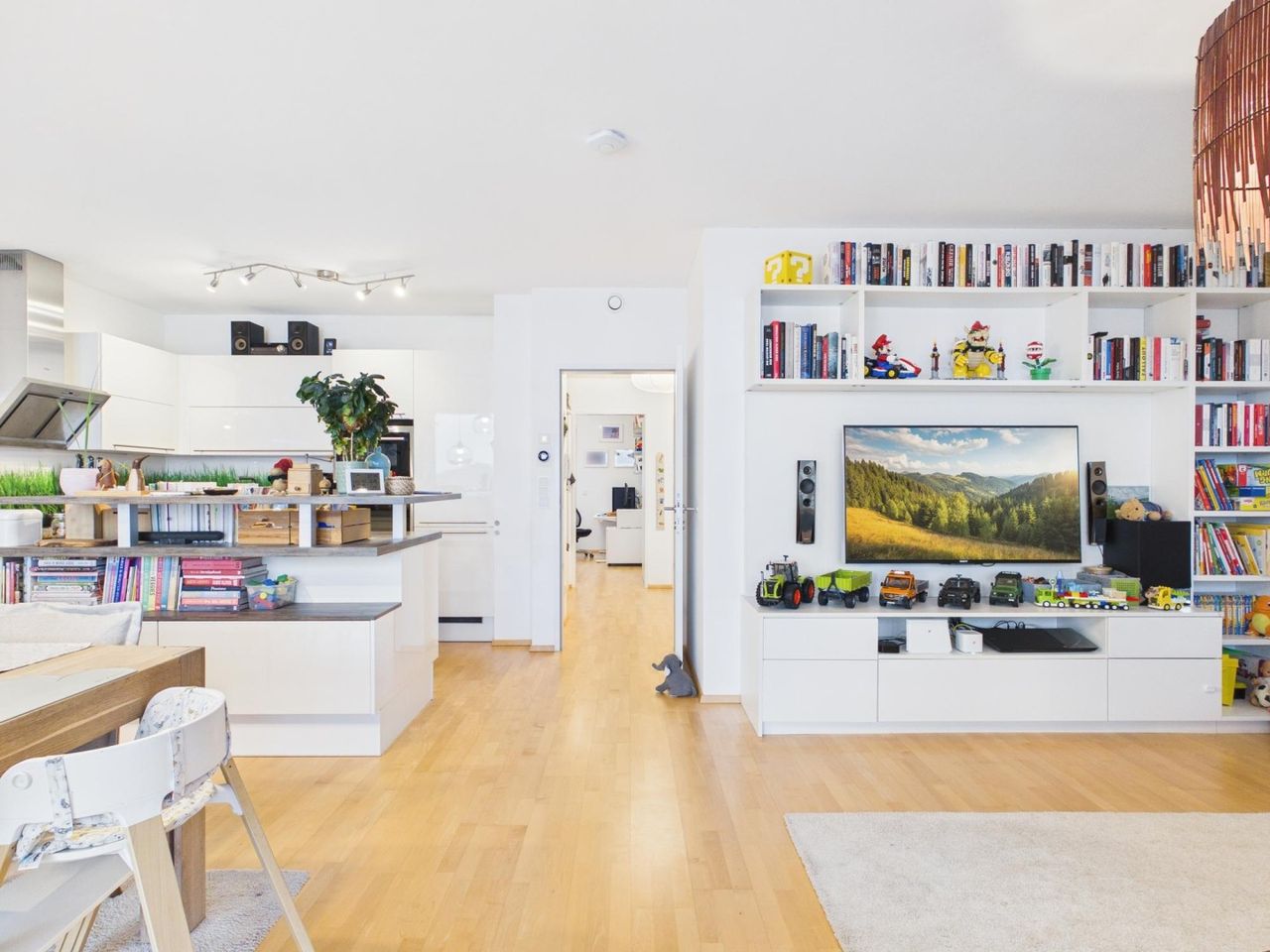Besonders hervorzuheben ist die perfekte Raumaufteilung, sowie das offene Wohnkonzept (Wohnen - Essen - Kochen) - Alle Räume sind getrennt begehbar, was für ein angenehmes und funktionales Wohngefühl sorgt.