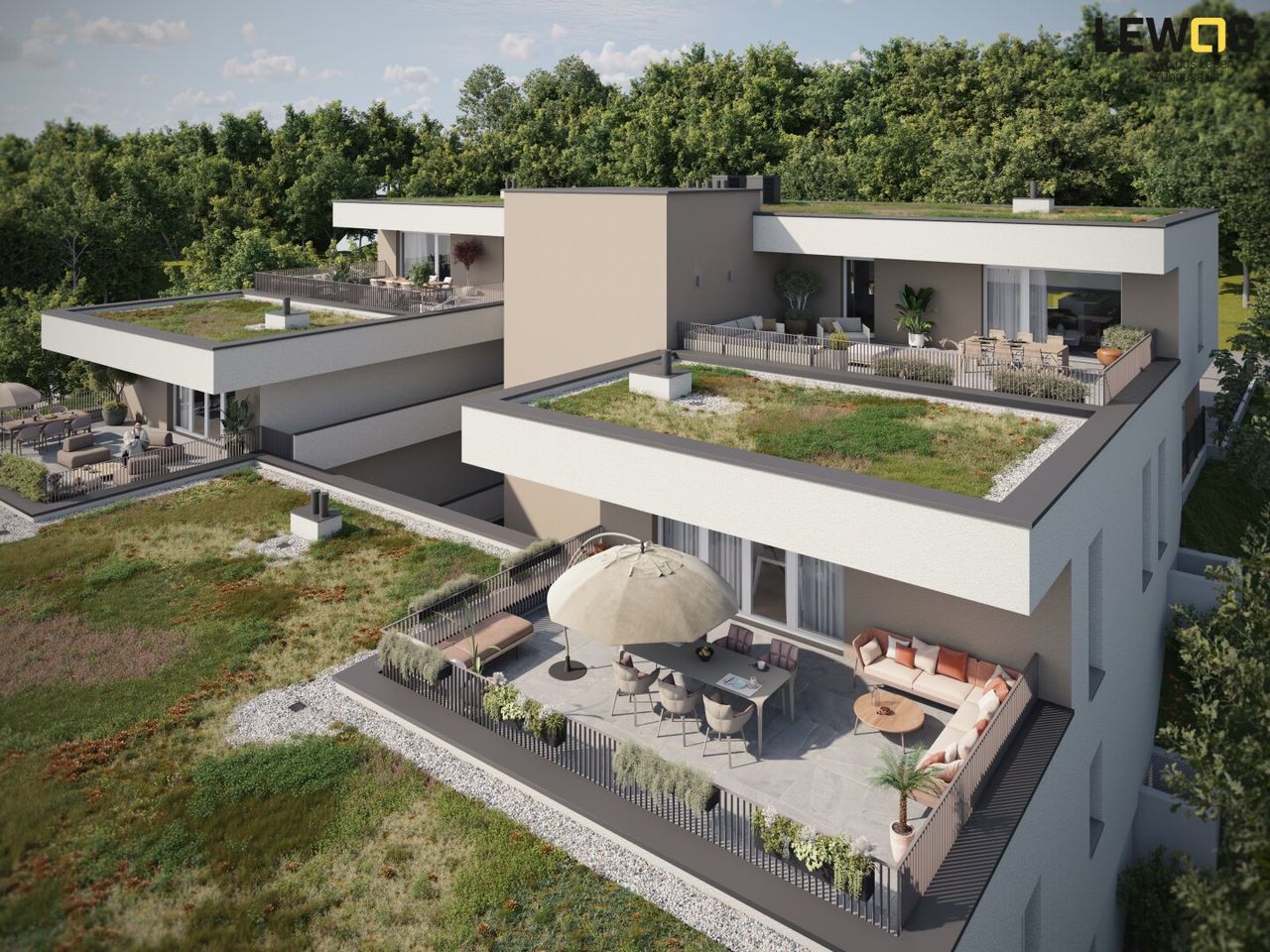 Die moderne, terrassenförmige Architektur schafft großzügigen Wohnraum und beeindruckende Outdoorflächen, die ein einzigartiges Wohngefühl bieten. Ein besonderes Highlight sind die weitläufigen Terrassen und Eigengärten, die Raum für Entspannung, gesellige Momente und ein Wohnerlebnis im Grünen schaffen.