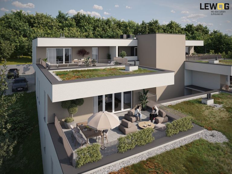 Die moderne, terrassenförmige Architektur schafft großzügigen Wohnraum und beeindruckende Outdoorflächen, die ein einzigartiges Wohngefühl bieten. Ein besonderes Highlight sind die weitläufigen Terrassen und Eigengärten, die Raum für Entspannung, gesellige Momente und ein Wohnerlebnis im Grünen schaffen.