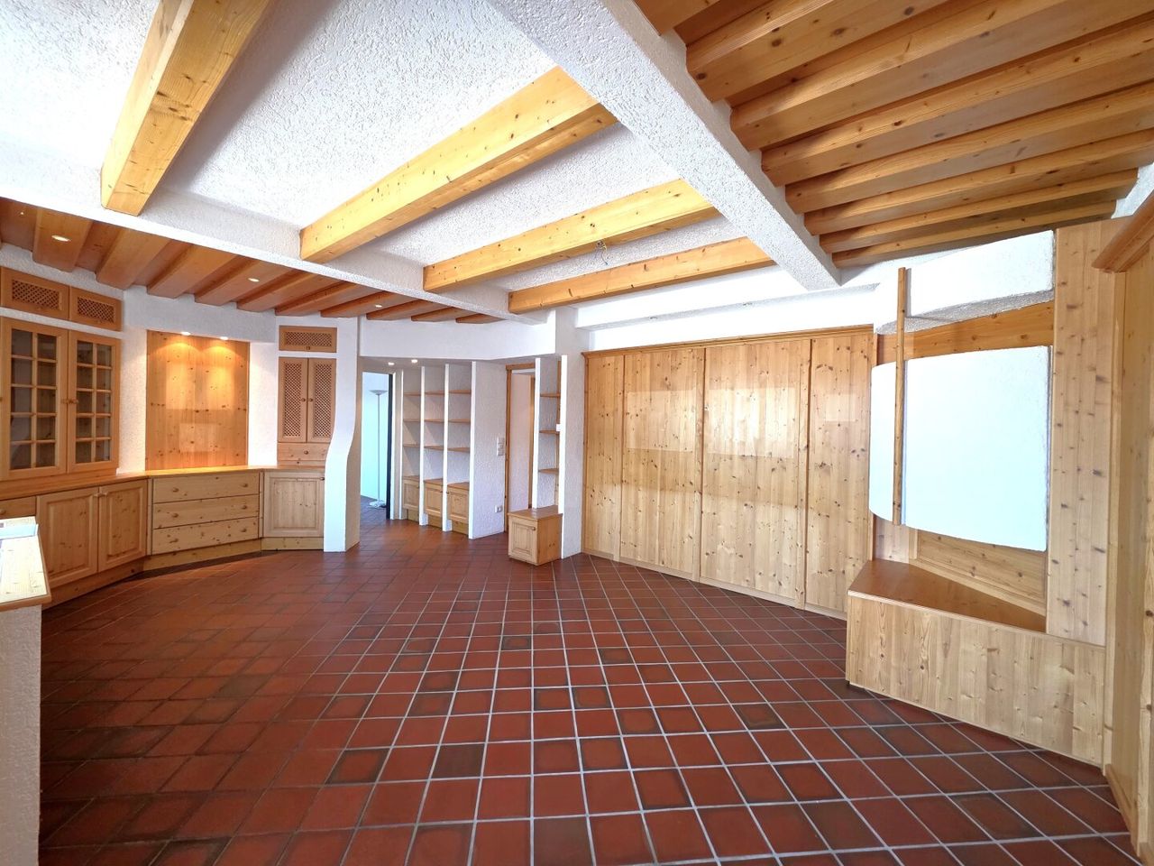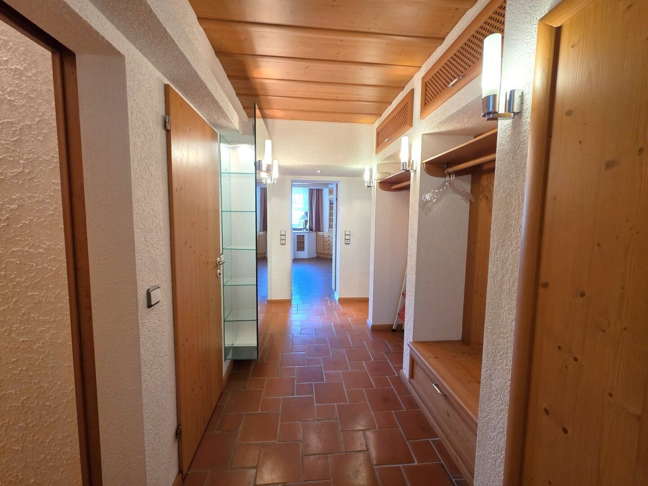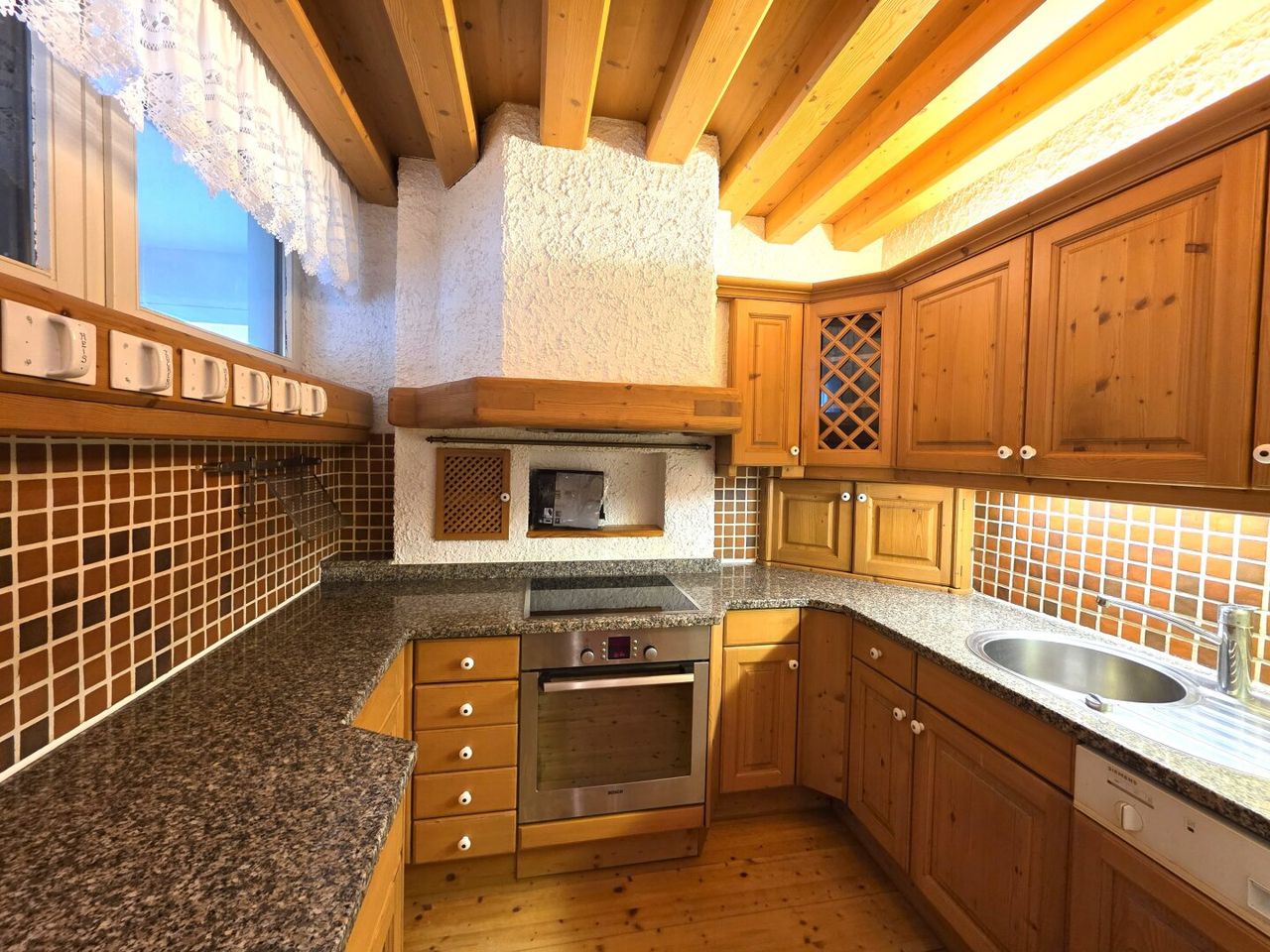 Im Innenbereich überzeugen handgeschlagene italienische Fliesen, die sich durch das Vorhaus, die Gänge, das Wohnzimmer sowie Bad und WC ziehen und dem Objekt einen einzigartigen Charakter verleihen. Die Küche ist mit einem warmen Holzboden ausgestattet und fügt sich harmonisch in das Gesamtbild ein.
