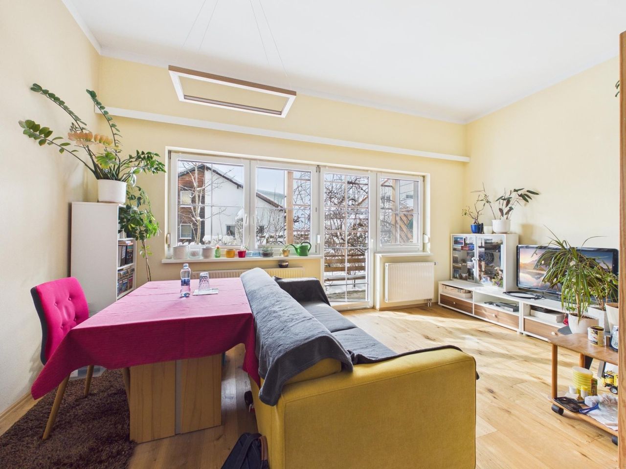 Die Wohnung überzeugt durch eine durchdachte Raumaufteilung und helle Wohnräume. Der gemütliche Wohn- und Essbereich bietet -neben der integrierten, jedoch separat situierten Küche- direkten Zugang zur Terrasse und zum eigenen Garten – ideal zum Entspannen, Garteln oder für gemütliche Stunden im Freien.