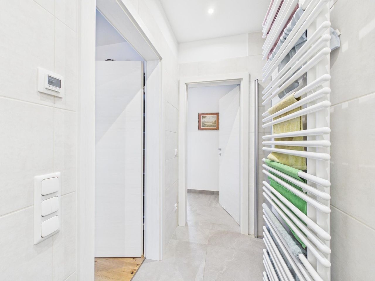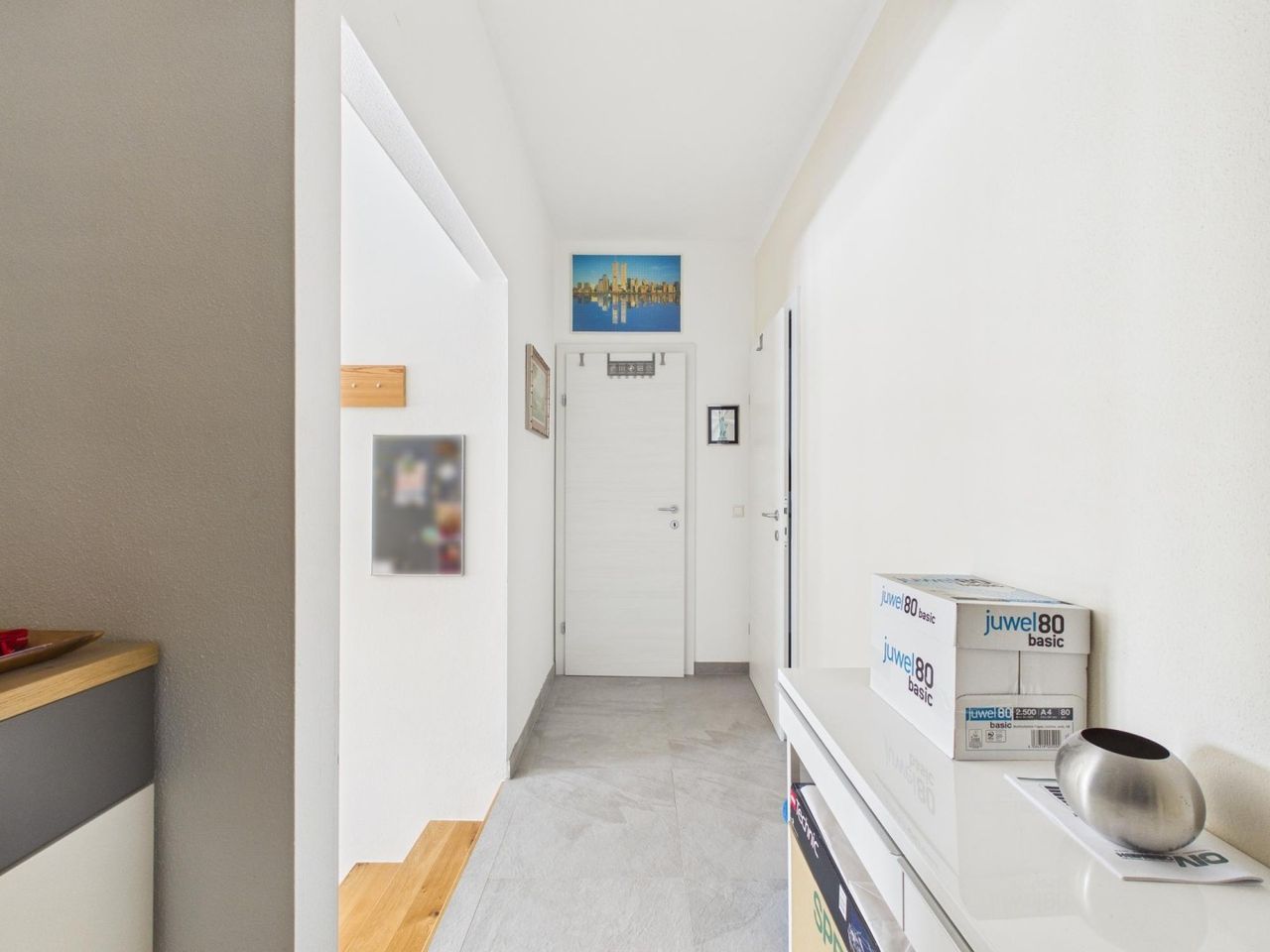 Das Schlafzimmer bietet ausreichend Platz für individuelle Gestaltung, während das Badezimmer sowie das WC funktional und komfortabel ausgestattet sind. Die eigene Garage sorgt für bequemes und sicheres Parken direkt neben dem Zugang des Wohnhauses.