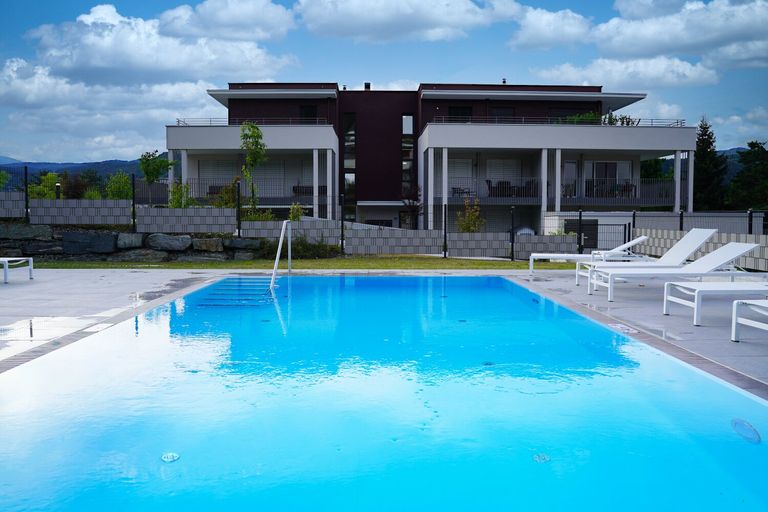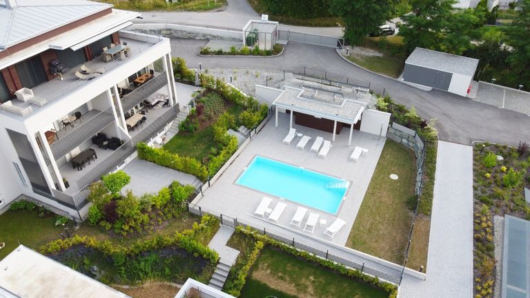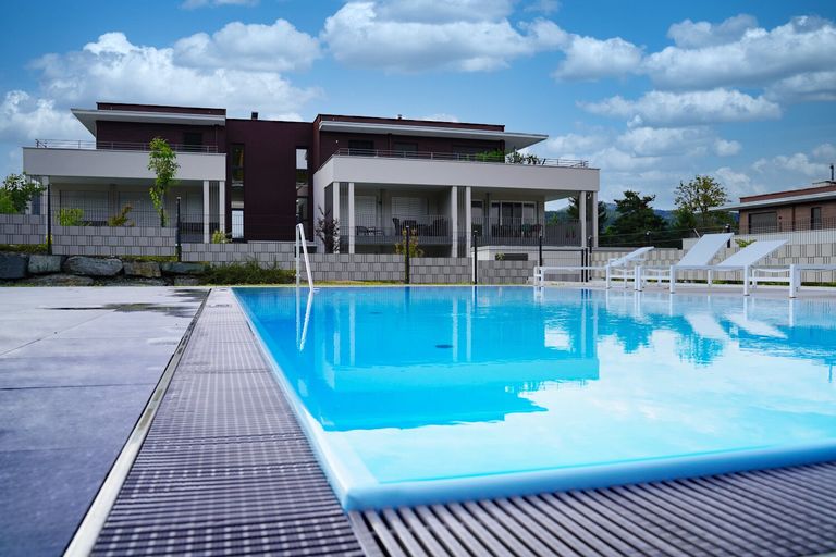 + Outdoor-Pool mit Liegestühle inkl. Poolhaus mit Umkleidekabinen & Sanitäranlagen