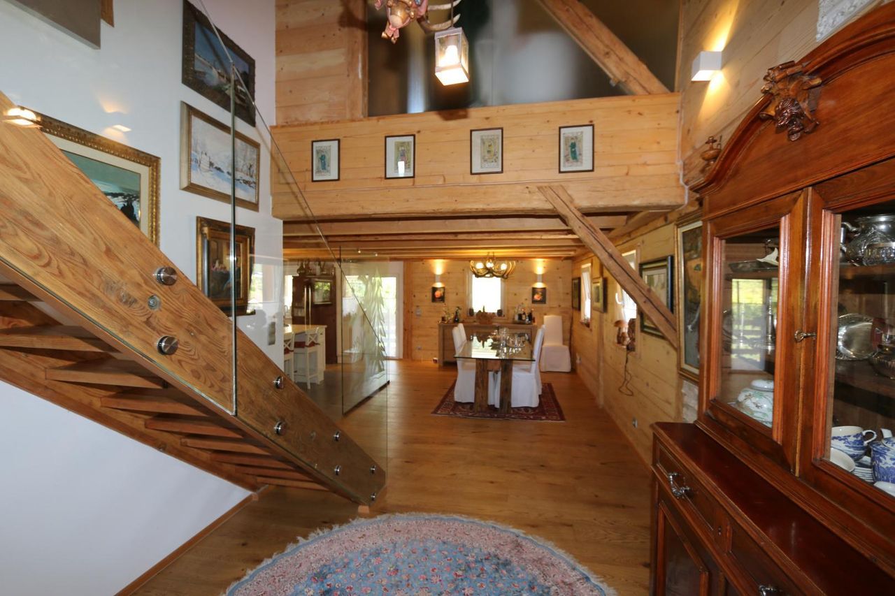* Chalet-artige Wohnung mit riesigem Garten, "beinahe ein ganzes Haus" * sehr idyllisches und nette, Wohnung in Bleiberg-Kreuth * aufwendig und liebevoll und mit viel Geschmack, Altholz und modernen Komponenten saniert * ruhig gelegen in friedlicher Natur * ca. 1.744 m² Grundstücksgröße * 2 wunderschöne Terrassen zum Entspannen * Pizzaofen im Freien * Wohnfläche: ca. 180 m² * EG: Windfang, großer offener Wohnraum bestehend aus Wohnlandschaft, Essbereich, großer Küche und eine Terrasse * OG: Gästezimmer mit Bad und WC (ca. 29 m²), Masterbedroom mit WC, freistehender Badewanne, Doppelwaschbecken und begehbarem Schrank (ca. 50 m²) * Werkstatt im Nebengebäude * 2...