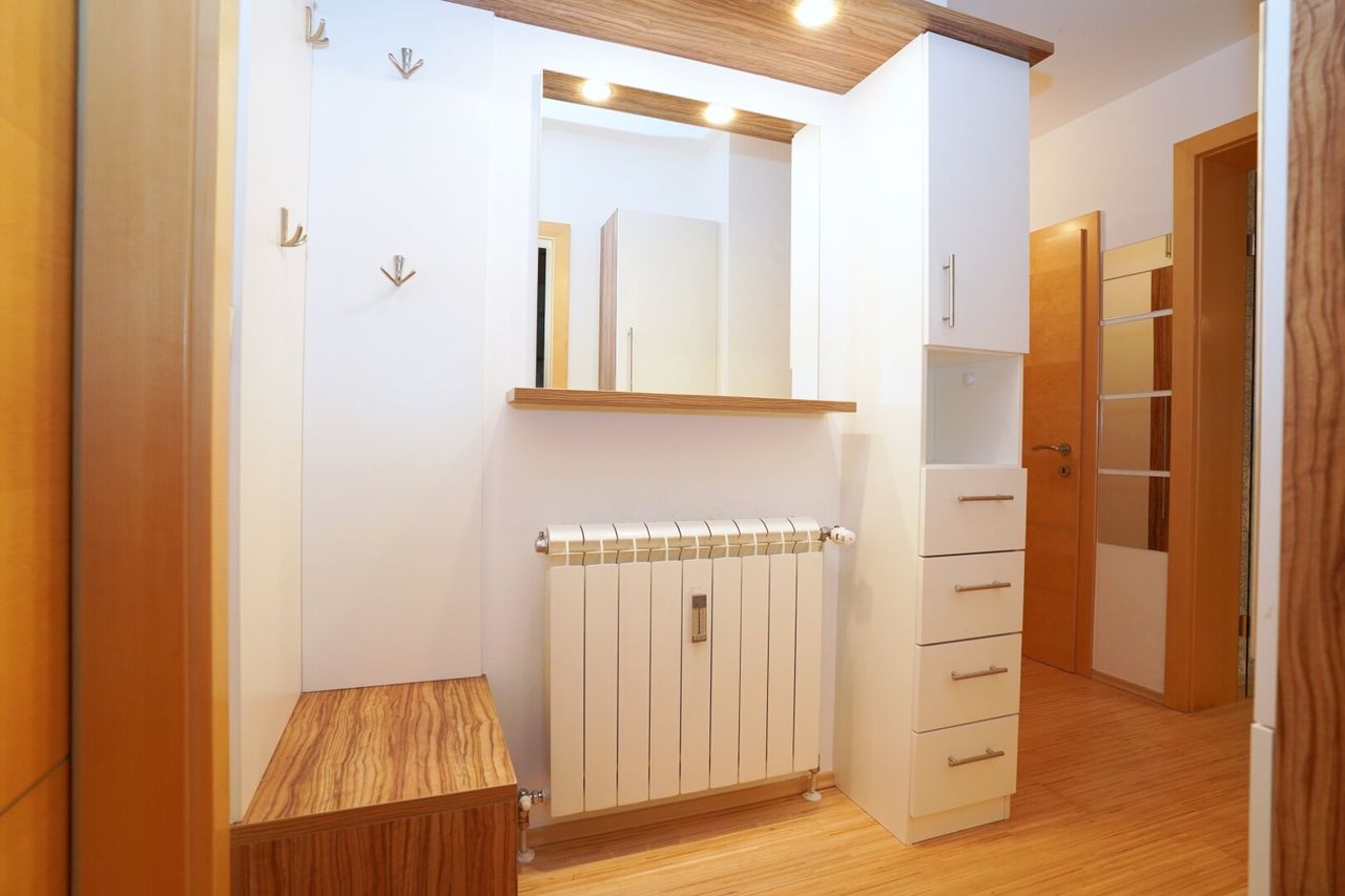 + Vorraum mit Einbauschränken bietet ausreichend Fläche für Ihre Garderobe