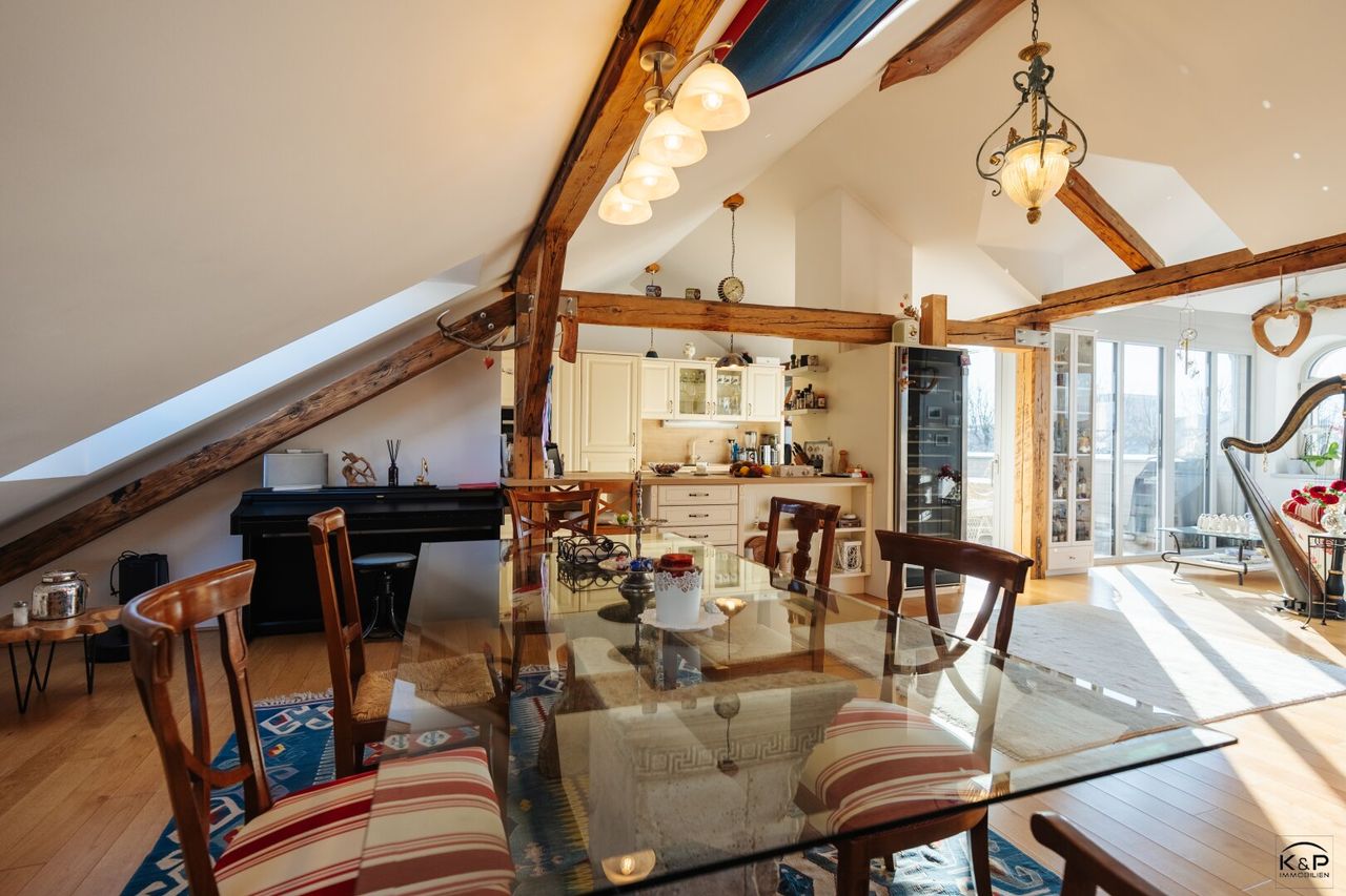 Das Herzstück der Wohnung bildet der über 70 m² große, offen gestaltete Wohn- und Loftbereich mit Kamin. Die integrierte Küche fügt sich harmonisch in das offene Raumkonzept ein und unterstreicht den repräsentativen Charakter dieses außergewöhnlichen Wohnraums. Ergänzt wird das Raumangebot durch mehrere Zimmer, zwei hochwertig ausgestattete Bäder mit freistehender Jacuzzi-Badewanne und Walk-in-Dusche, eine Speisekammer, einen separaten Garderobenraum im Eingangsbereich sowie eine private Infrarotkabine.