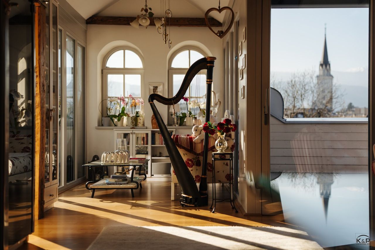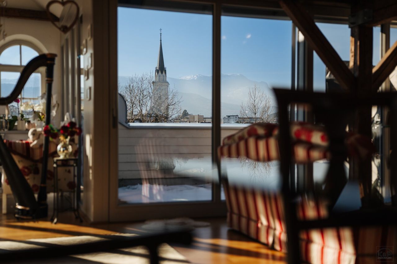 Die Wohnung liegt im obersten Geschoss und eröffnet ein Wohngefühl, das von Großzügigkeit, Licht und architektonischer Klarheit geprägt ist. Sichtbares Dachstuhlgebälk, beeindruckende Raumhöhen von nahezu vier Metern sowie die offene Loft-Struktur verleihen dieser Immobilie ihren unverwechselbaren Charakter. Großzügige Fensterflächen und die südwestliche Ausrichtung sorgen für ein lichtdurchflutetes Ambiente und einen weiten Blick über die Stadt bis zu den umliegenden Bergketten.