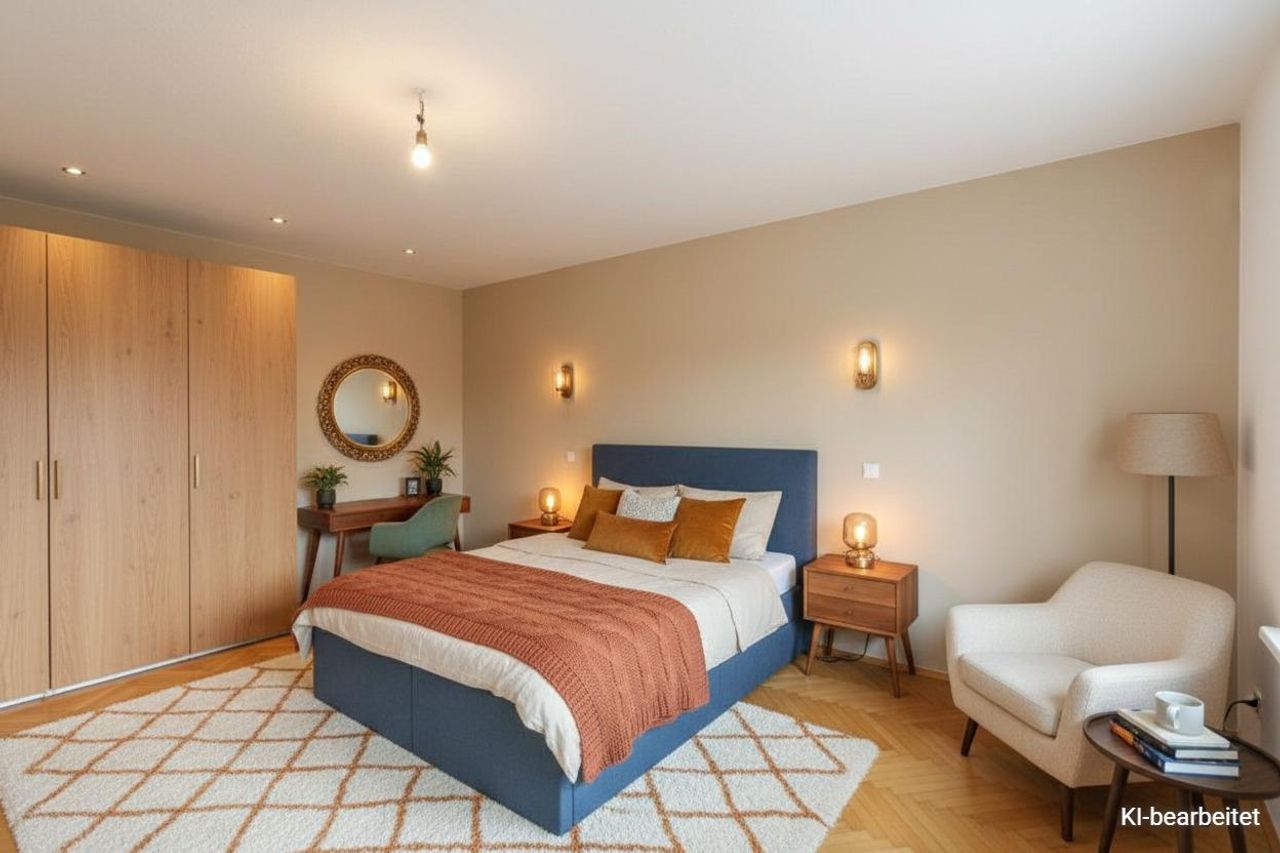 * Böden: moderner Holz- und Fliesenboden
