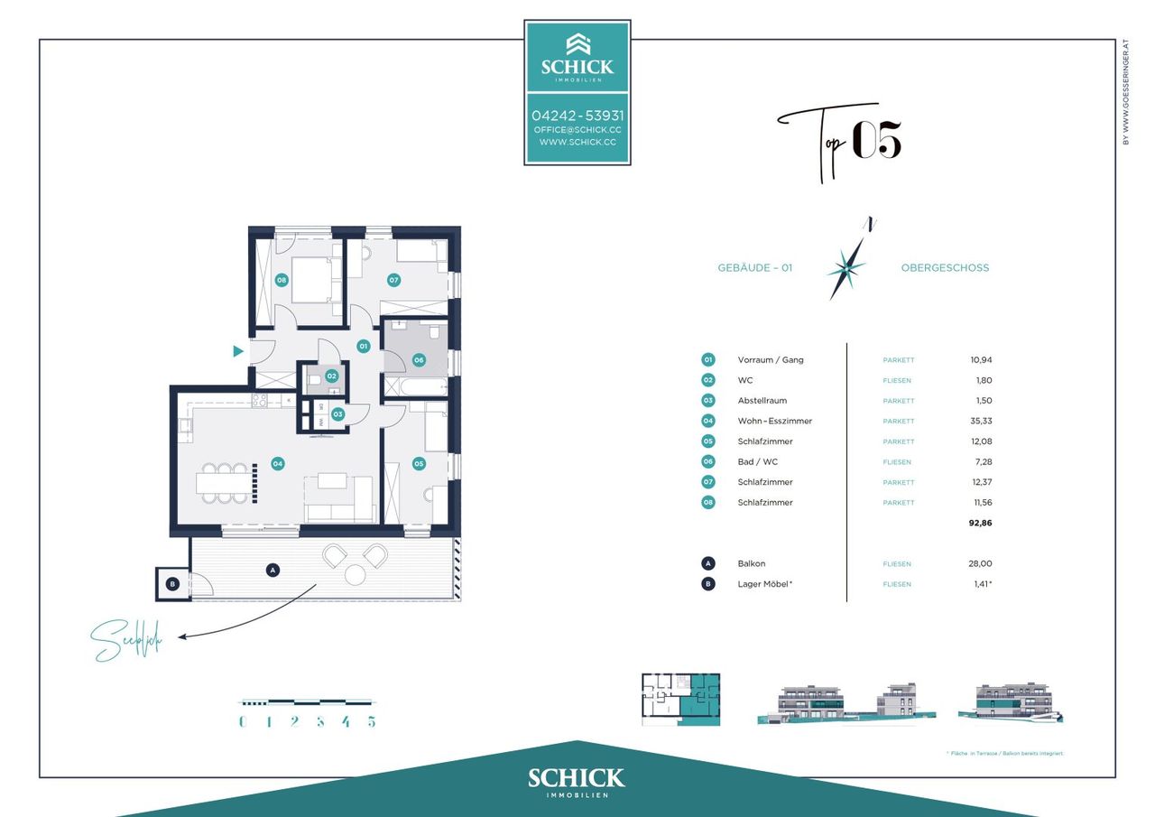 GEBÄUDE 01, TOP 05 — BELLAGO — Eigentumswohnung mit 92,86 m² WNF / 4 Zimmer / 28,00 m² Balkon