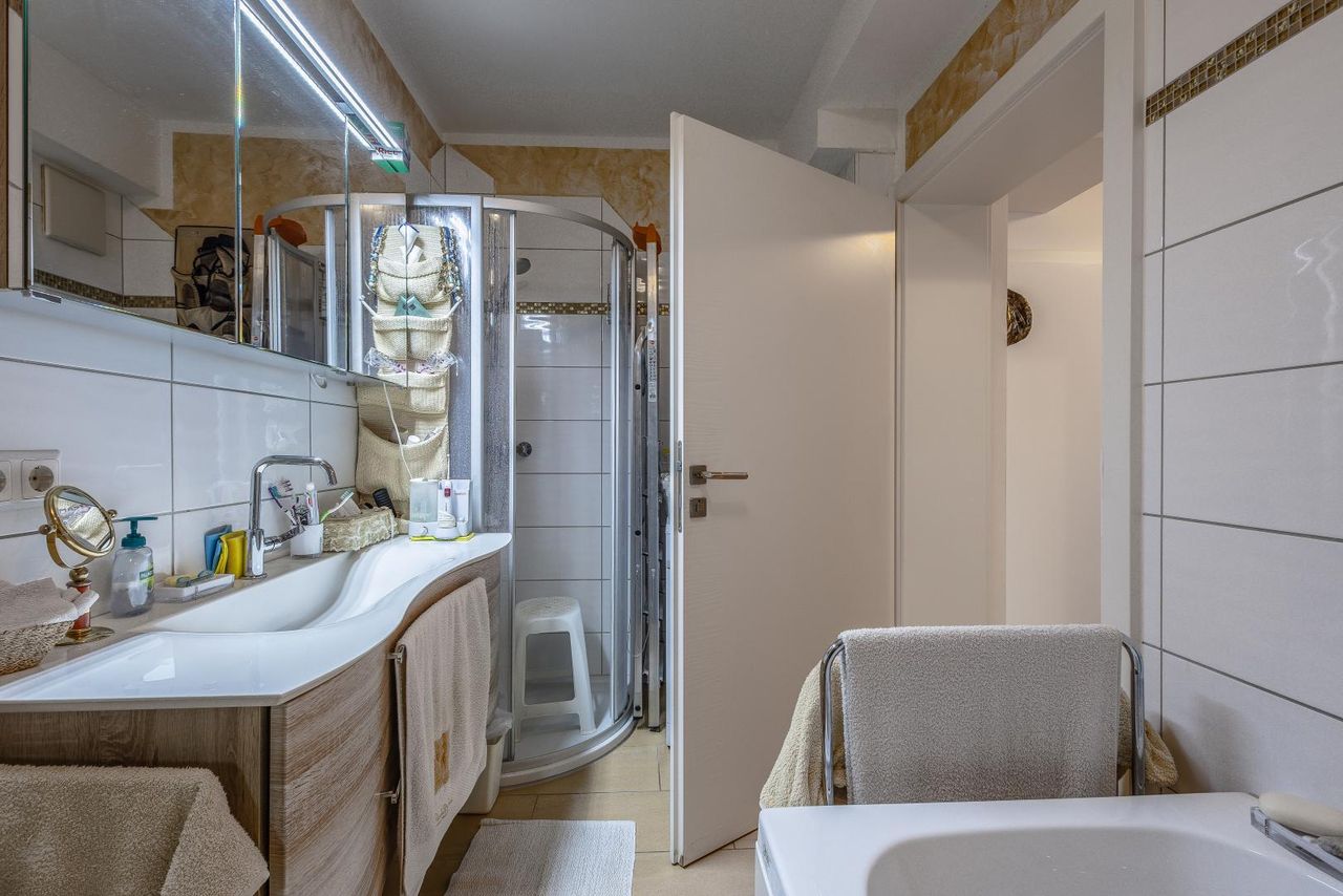 * 1 Bad mit Dusche, Badewanne und WC