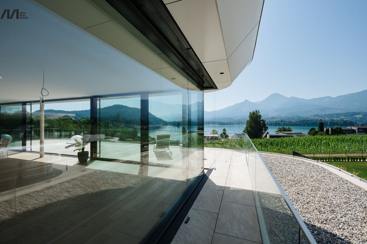 Jede der nur zwanzig Residenzen bietet unverbaubare Ausblicke auf den Faaker See und die Berge, privaten Seezugang sowie einen beheizten Outdoor-Pool.