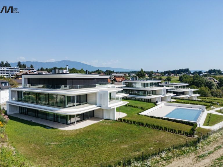 Jede der nur zwanzig Residenzen bietet unverbaubare Ausblicke auf den Faaker See und die Berge, privaten Seezugang sowie einen beheizten Outdoor-Pool.