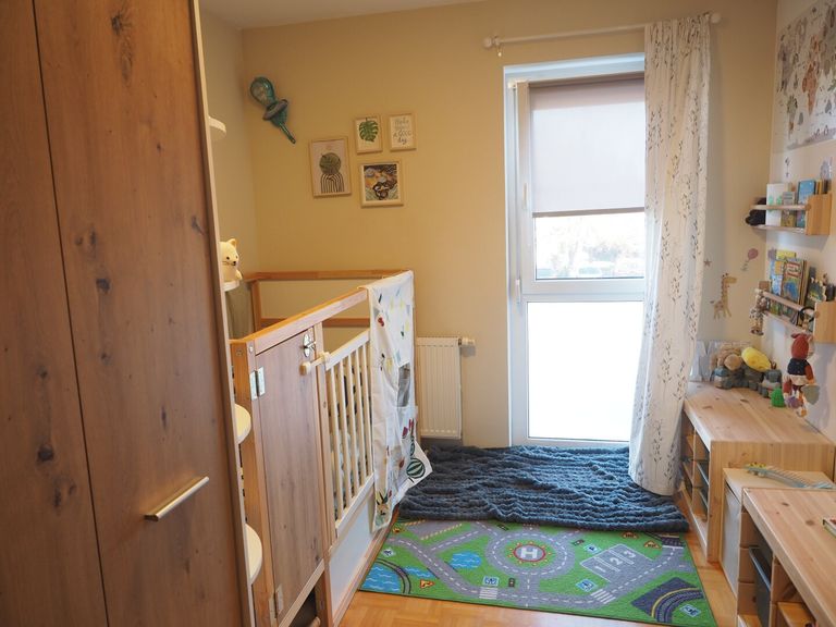 Die Wohnung verfügt über zwei gut geschnittene Schlafzimmer, die sich flexibel als Schlaf-, Kinder- oder Arbeitszimmer nutzen lassen. Eine separate Küche, ein Badezimmer, ein separates WC sowie ein praktischer Vorraum runden das Raumangebot ab.