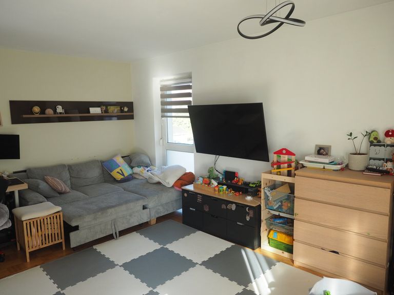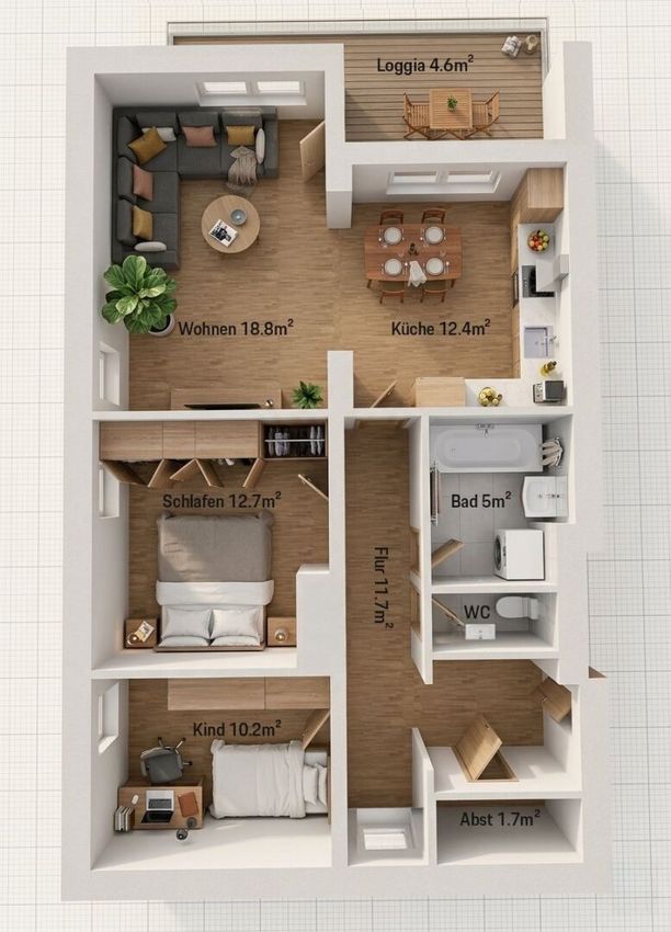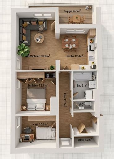 Auf rund 75 m² Wohnfläche bietet die Wohnung ausreichend Platz für Paare, kleine Familien oder auch als attraktive Anlageimmobilie. Der helle Wohn- und Essbereich bildet das Herzstück der Wohnung und lädt zu gemütlichen Stunden mit Familie und Freunden ein. Von hier aus gelangen Sie direkt auf den Balkon, der einen schönen Blick in den Gartenbereich mit Spielplatz bietet – ideal zum Entspannen oder für den morgendlichen Kaffee.