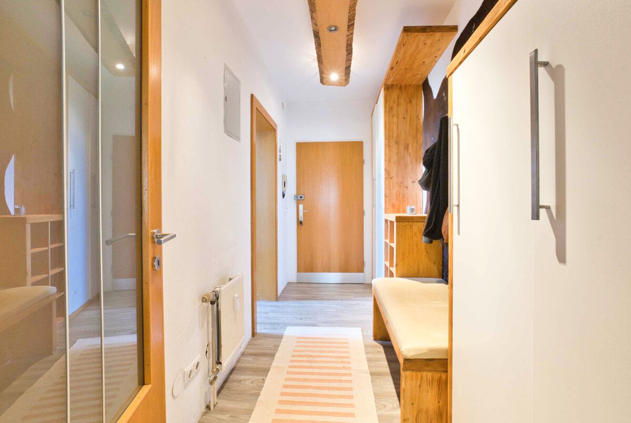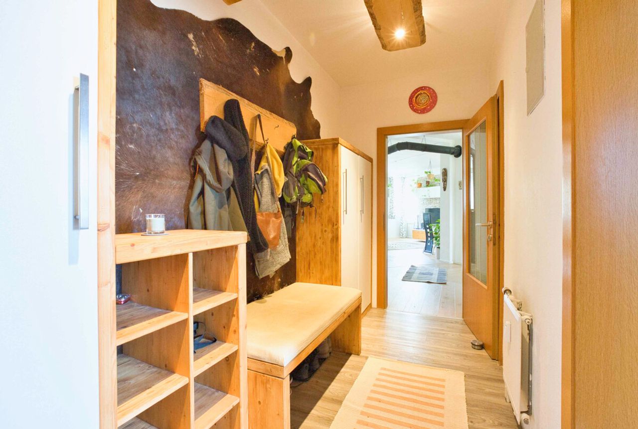 Die separate Küche bietet ausreichend Platz zum Kochen und wird durch eine praktische Speis ergänzt, die zusätzlichen Stauraum schafft. Das Badezimmer präsentiert sich gepflegt und funktional, ein separates WC sorgt für zusätzlichen Komfort im Alltag. Der großzügig gestaltete Vorraum empfängt Bewohner und Gäste auf angenehme Weise und bietet reichlich Platz für Garderobe und zusätzlichen Stauraum.