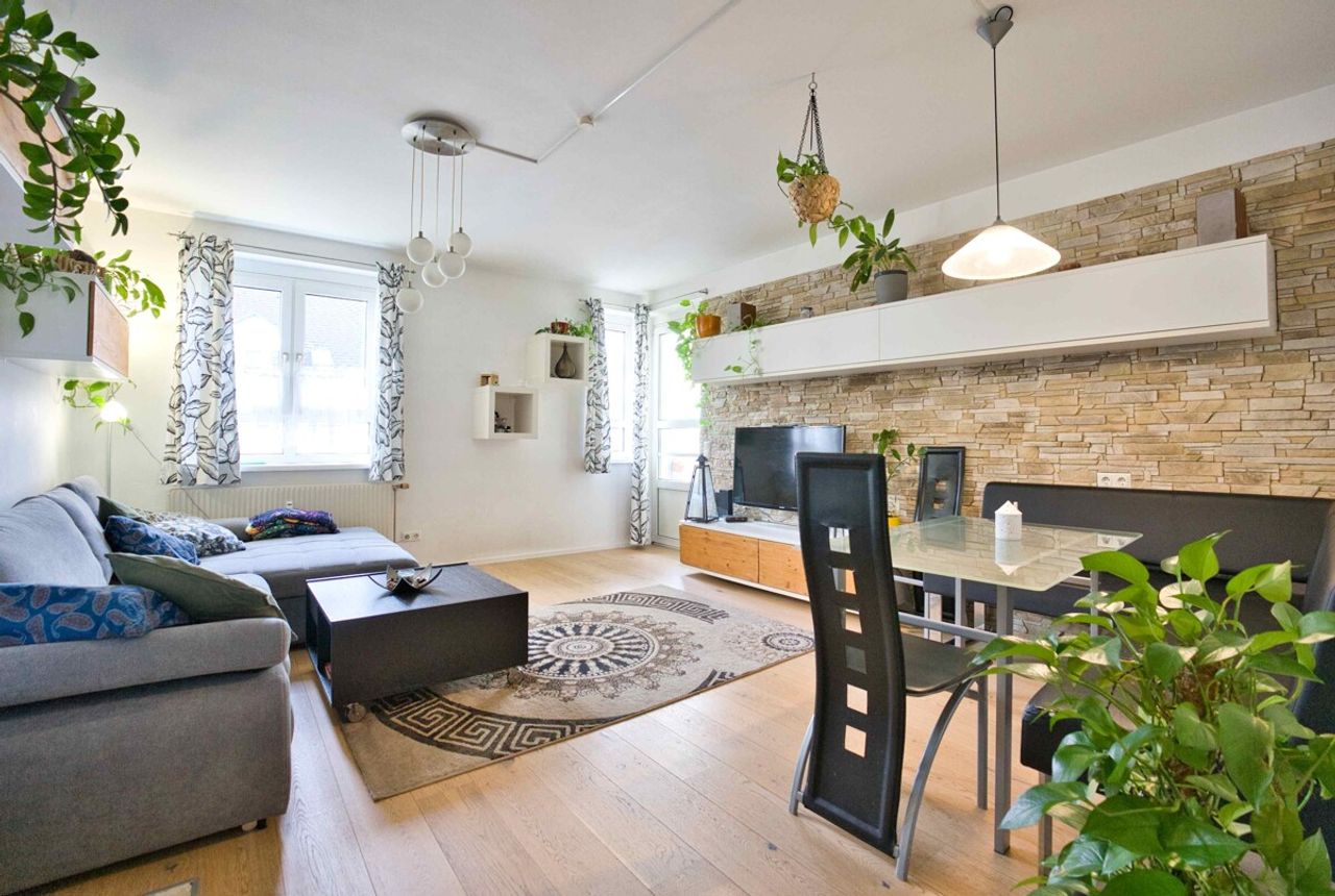 Diese äußerst gepflegte 4-Zimmer-Wohnung im 1. Obergeschoss überzeugt durch ihre großzügige Raumaufteilung, ihren sehr guten Zustand und ein besonderes Highlight: den rund 43 m² großen Eigengarten.