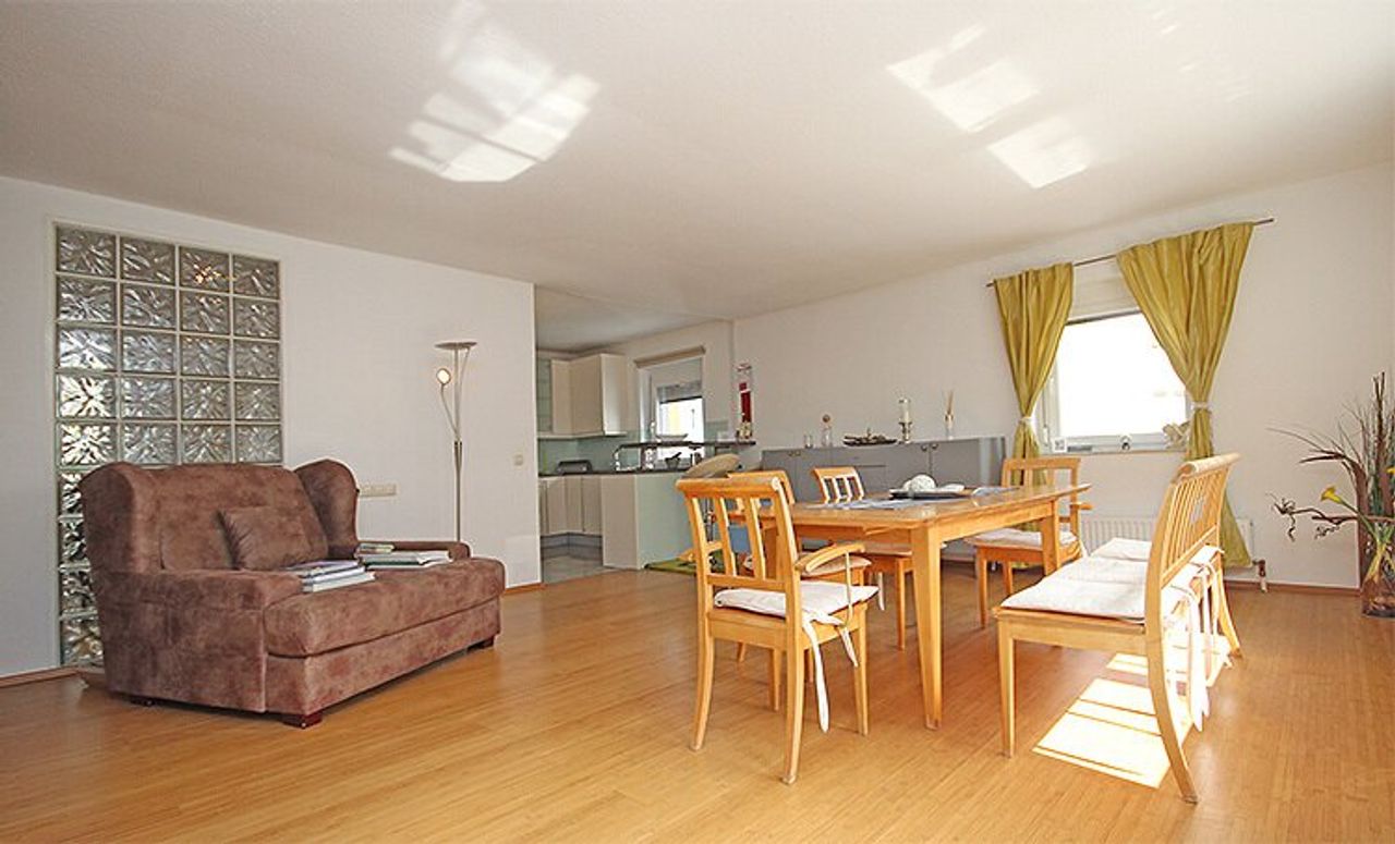 Die Wohnung ist in einem sehr guten Zustand und ist mit hochwertigen Materialien wie Fliesen und Laminatboden ausgestattet. Die Zentralheizung sorgt für wohlige Wärme in den kalten Wintermonaten. Eine moderne Einbauküche ist bereits vorhanden und lässt keine Wünsche offen. Auch der Südbalkon bzw. die Südterrasse lädt zum Entspannen und Sonnenbaden ein.