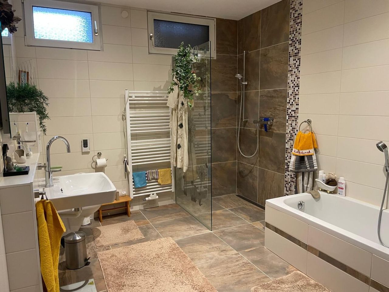 Das Badezimmer ist mit einer Badewanne und einer separaten Dusche ausgestattet und erfüllt somit alle Wünsche an modernes Wohnen. Die Lage der Wohnung überzeugt zudem durch eine ausgezeichnete Infrastruktur: Ein Busanschluss sorgt für eine bequeme Anbindung an die umliegenden Gemeinden und Städte. Einkaufsmöglichkeiten wie Supermarkt und Bäckerei befinden sich in unmittelbarer Nähe und erleichtern den Alltag enorm.