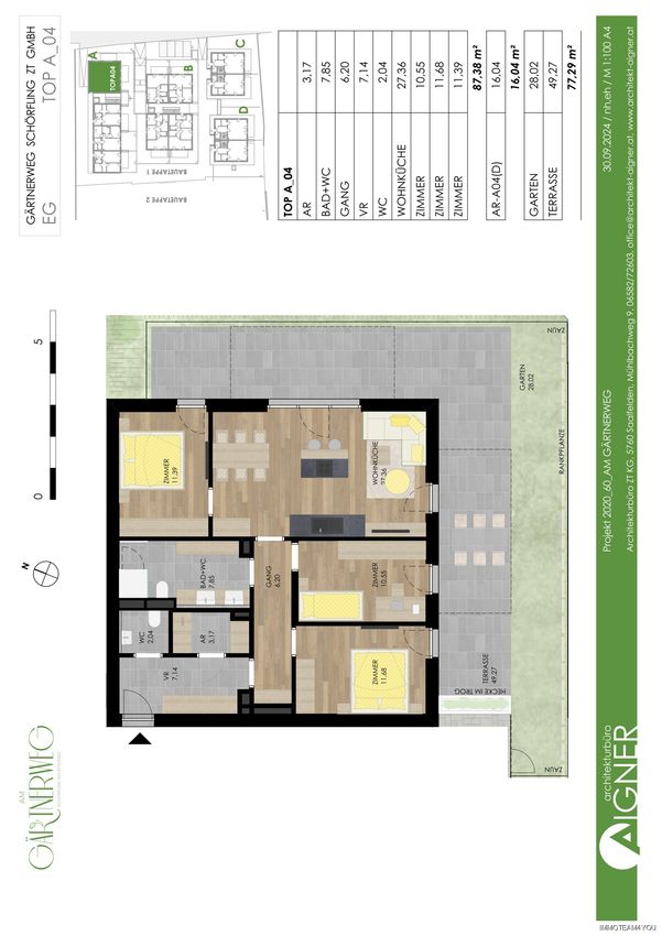 Am Gärtnerweg in Schörfling entsteht Ihr neues, nachhaltiges Zuhause. Eleganter Wohnkomfort mit modernster Ausstattung. Der zentrale Innenhof "Die grüne Mitte" bieten Lebensqualität "pur".