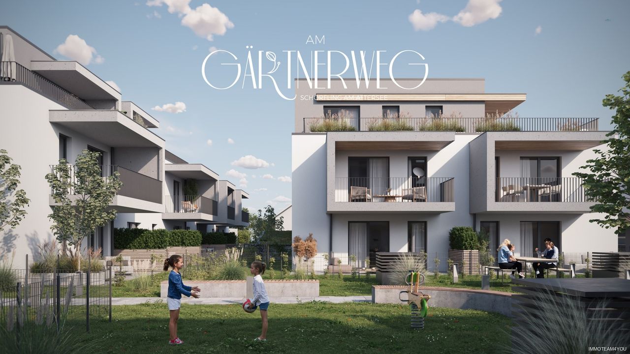 "Am Gärtnerweg" - Top A04. Ruhiges Wohnen in verkehrsfreier Lage. Jetzt entscheiden. Mehr bekommen. Ihr neues Zuhause plus ein Tiefgaragenplatz gratis. Nur 10 TG-Plätze verfügbar. Gültig bis zum geplanten Baustart. Ein Ort zum Wohlfühlen. Erleben Sie ruhiges Wohnen in einer stilvollen und verkehrsfreien Anlage. Am Gärtnerweg in Schörfling entsteht Ihr neues, nachhaltiges Zuhause. Eleganter Wohnkomfort mit modernster Ausstattung. Der zentrale Innenhof "Die grüne Mitte" bieten Lebensqualität "pur". Schörfling am Attersee – ein Ort, an dem Sie die perfekte Balance zwischen Lebensqualität, beruflicher Perspektive und naturnahem Wohnen finden. Der Gärtnerweg ist mehr als nur ein Standort, er ist ein Lebensgefühl. Hier...