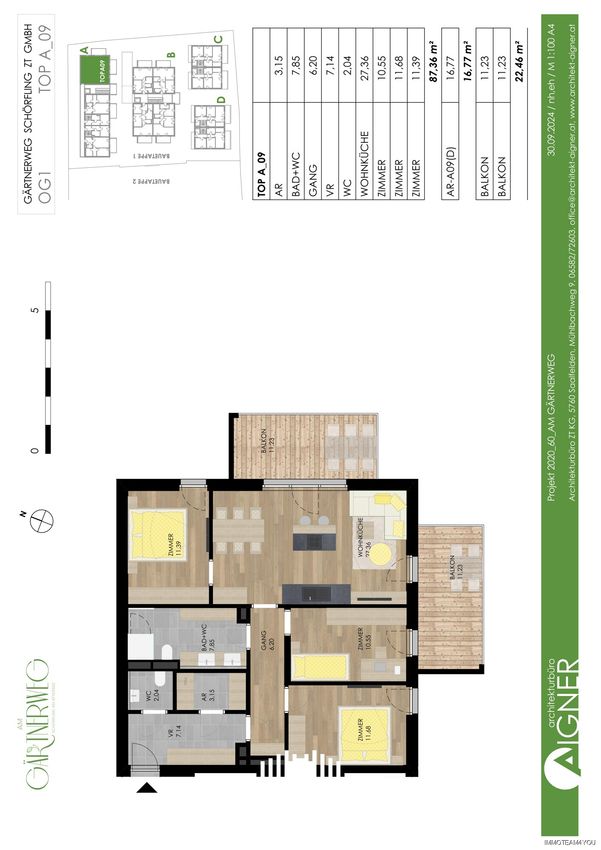 "Am Gärtnerweg" - Top A09. Ruhiges Wohnen in verkehrsfreier Lage. Jetzt entscheiden. Mehr bekommen. Ihr neues Zuhause plus ein Tiefgaragenplatz gratis. Nur 10 TG-Plätze verfügbar. Gültig bis zum geplanten Baustart. Ein Ort zum Wohlfühlen. Erleben Sie ruhiges Wohnen in einer stilvollen und verkehrsfreien Anlage. Am Gärtnerweg in Schörfling entsteht Ihr neues, nachhaltiges Zuhause. Eleganter Wohnkomfort mit modernster Ausstattung. Der zentrale Innenhof "Die grüne Mitte" bieten Lebensqualität "pur". Schörfling am Attersee – ein Ort, an dem Sie die perfekte Balance zwischen Lebensqualität, beruflicher Perspektive und naturnahem Wohnen finden. Der Gärtnerweg ist mehr als nur ein Standort, er ist ein Lebensgefühl. Hier...