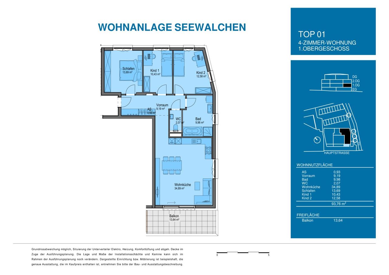 ERSTBEZUG! Optimal aufgeteilte 4-Zimmer-Neubauwohnung in unmittelbarer Seenähe in Seewalchen am Attersee zu verkaufen! Im Herzen von Seewalchen, nur wenige Schritte vom Ufer des Attersees entfernt, entsteht dieses hochwertige Wohnbauprojekt, mit Eigentumswohnungen ab ca. 77m² bis ca. 105m² und eine Büro-/Geschäftsfläche, welches voraussichtlich im Juni 2026 fertiggestellt wird. Beim Betreten der Wohnung (Lift vorhanden!) empfängt Sie ein großzügiger Vorraum, der als Mittelpunkt Zugang zu allen weiteren Räumlichkeiten bietet. RAUMAUFTEILUNG: - Vorraum/Garderobe - Wohn-/Essbereich - 3x Schlafzimmer - Badezimmer mit Badewanne & Dusche, Waschbecken, Waschmaschinenanschluss - separate Toilette - Balkon