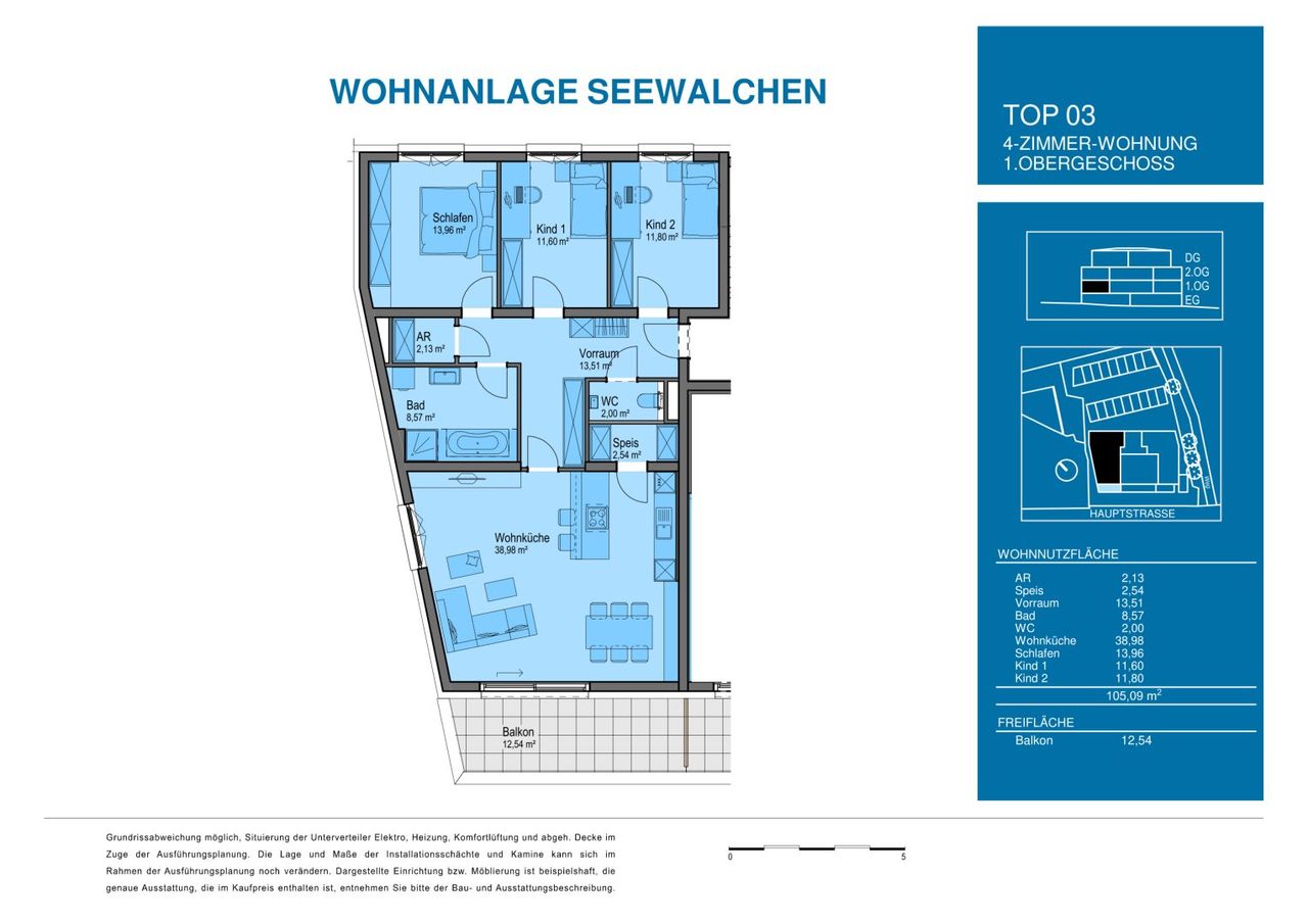 ERSTBEZUG! Optimal aufgeteilte 4-Zimmer-Neubauwohnung in unmittelbarer Seenähe in Seewalchen am Attersee zu verkaufen! Im Herzen von Seewalchen, nur wenige Schritte vom Ufer des Attersees entfernt, entsteht dieses hochwertige Wohnbauprojekt, mit Eigentumswohnungen ab ca. 77m² bis ca. 105m² und eine Büro-/Geschäftsfläche, welches voraussichtlich im Juni 2026 fertiggestellt wird. Beim Betreten der Wohnung (Lift vorhanden!) empfängt Sie ein großzügiger Vorraum, der als Mittelpunkt Zugang zu allen weiteren Räumlichkeiten (ausgenommen Speis) bietet. RAUMAUFTEILUNG: - Vorraum/Garderobe - Wohn-/Essbereich mit Speis - 3x Schlafzimmer - Badezimmer mit Badewanne & Dusche, Waschbecken, Waschmaschinenanschluss - separate Toilette - Abstellraum - Balkon