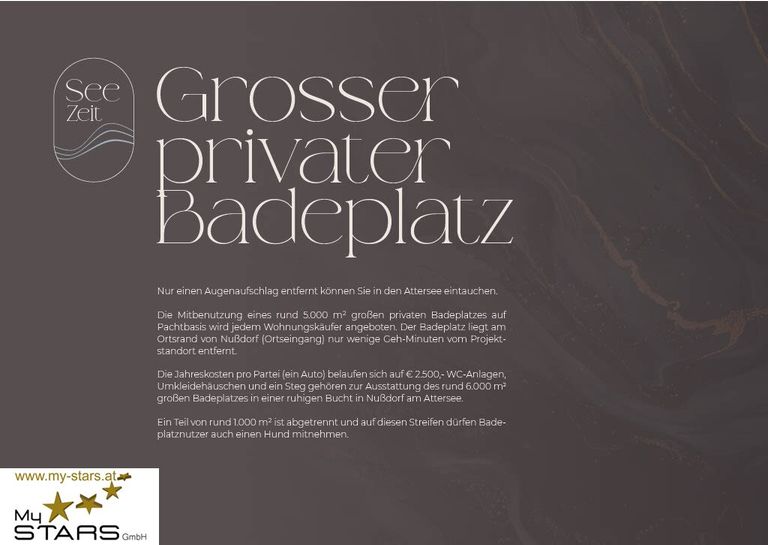 Mit einem Kaufpreis von € 1.020.000,-- inkl. 2 Carpotplätzen, investieren Sie nicht nur in eine Immobilie, sondern in einen Lebensstil, der geprägt ist von Natur, Ruhe und modernem Komfort. Lassen Sie sich diese einmalige Gelegenheit nicht entgehen und vereinbaren Sie noch heute einen Besichtigungstermin. Ihre Schlüsselfertige-Traumwohnung, zum sofortigen Einzug, am Attersee wartet auf Sie!