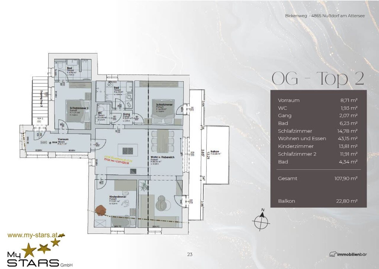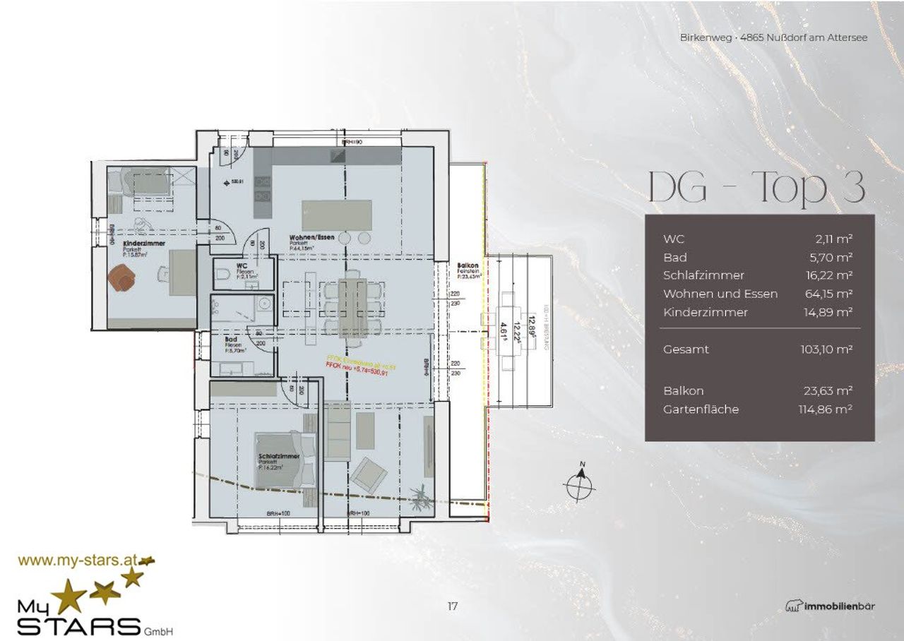 Die Wohnung im darüber liegenden Obergeschoß hat eine Wohnfläche von rd. 108 m² und die Dachgeschoß-Penthouse-Wohnung misst rd. 103 m². Detailbeschreibung und Preise im beigefügten Expose zum downloaden.